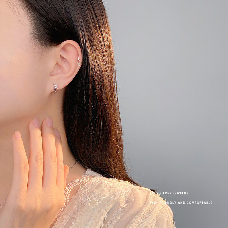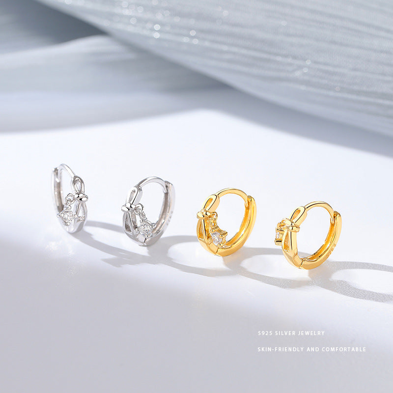 E廠【YC8439E】S925純銀精巧蝴蝶結鋯石耳扣女迷你小眾設計感小耳圈耳飾 24.03-1