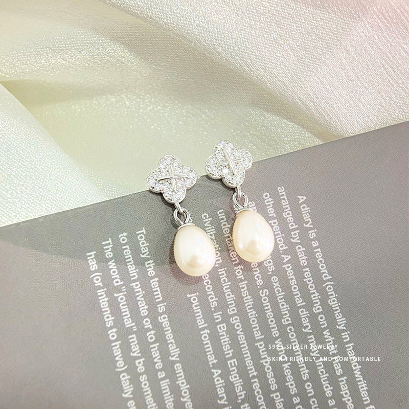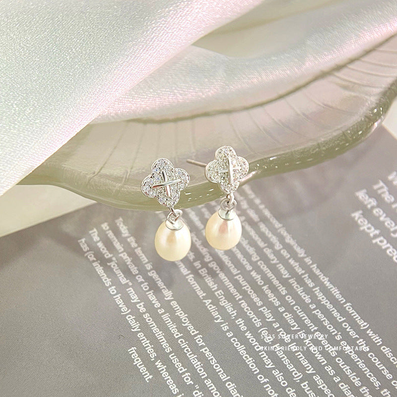 E廠【YC8542E】S925純銀法式花朵淡水珍珠耳環女輕奢高級感精緻氣質耳飾 24.02-3