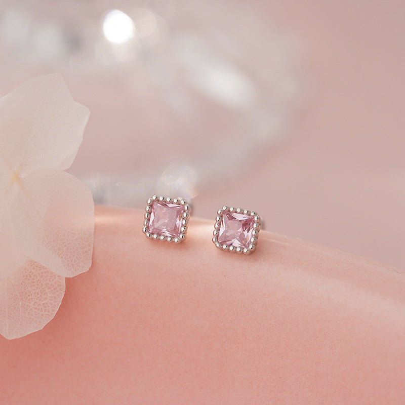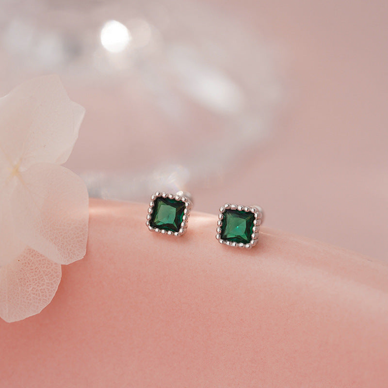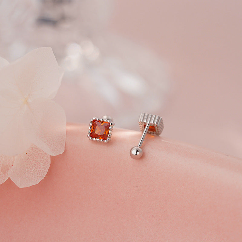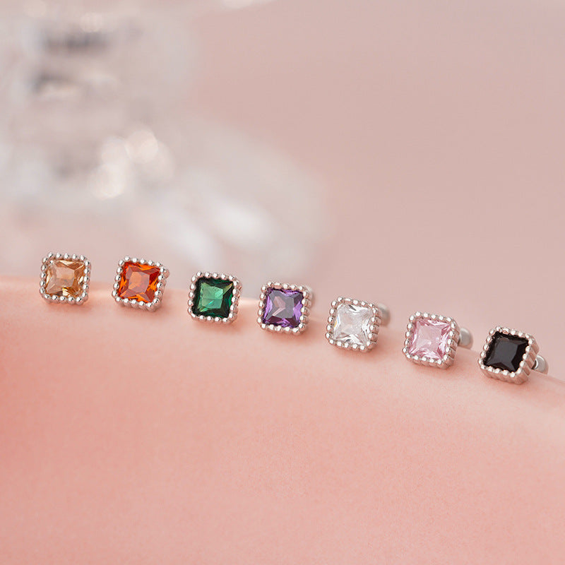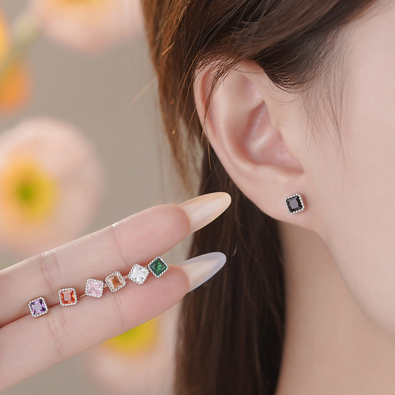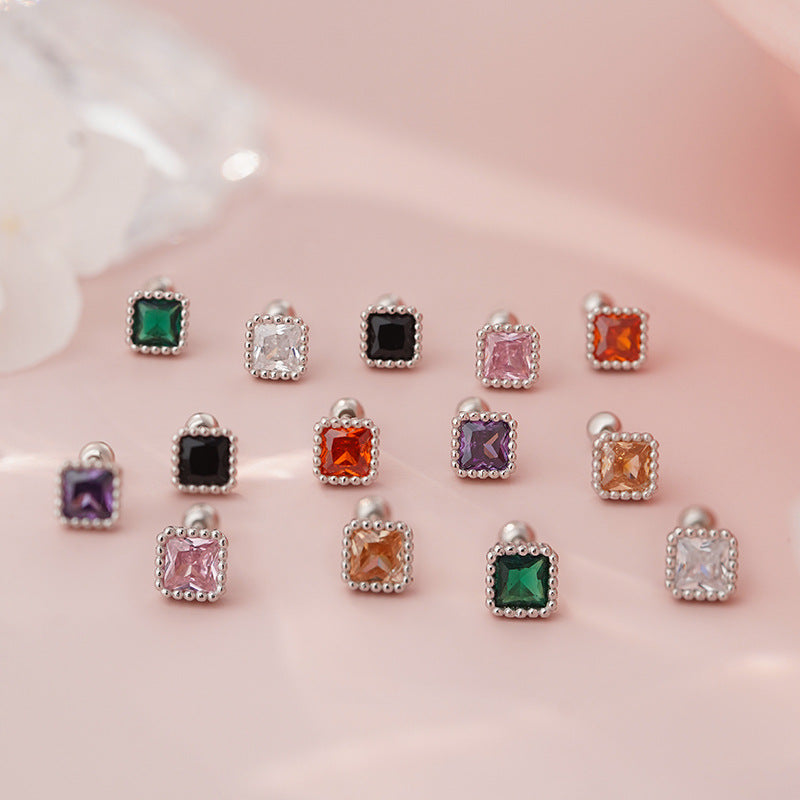 E廠【YC8648E】S999足銀方形鋯石螺絲耳環彩色多巴胺精緻輕奢風氣質耳飾 25.07-1