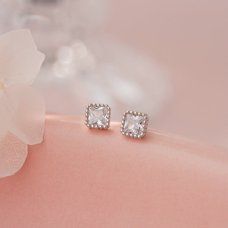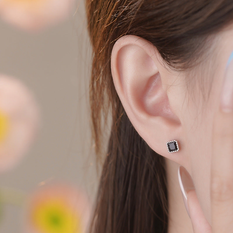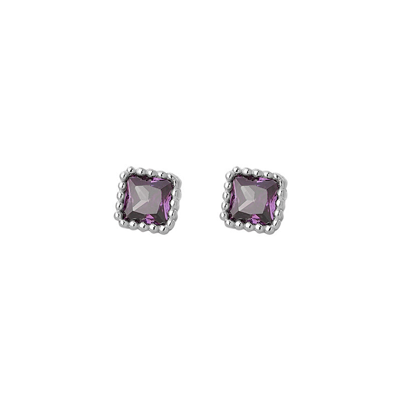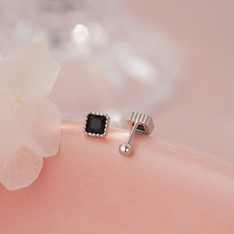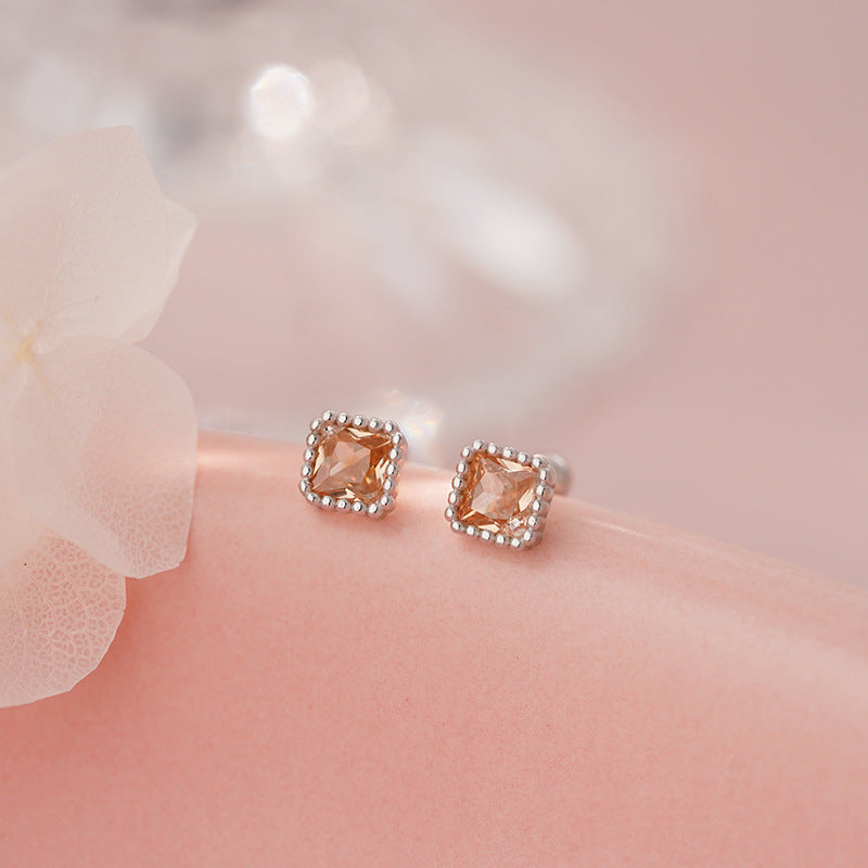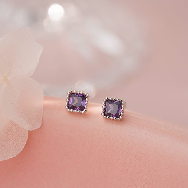 E廠【YC8648E】S999足銀方形鋯石螺絲耳環彩色多巴胺精緻輕奢風氣質耳飾 25.07-1