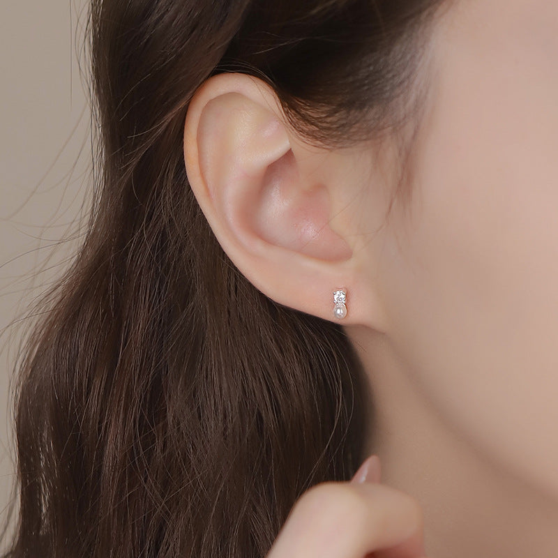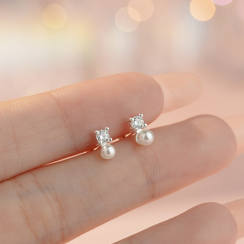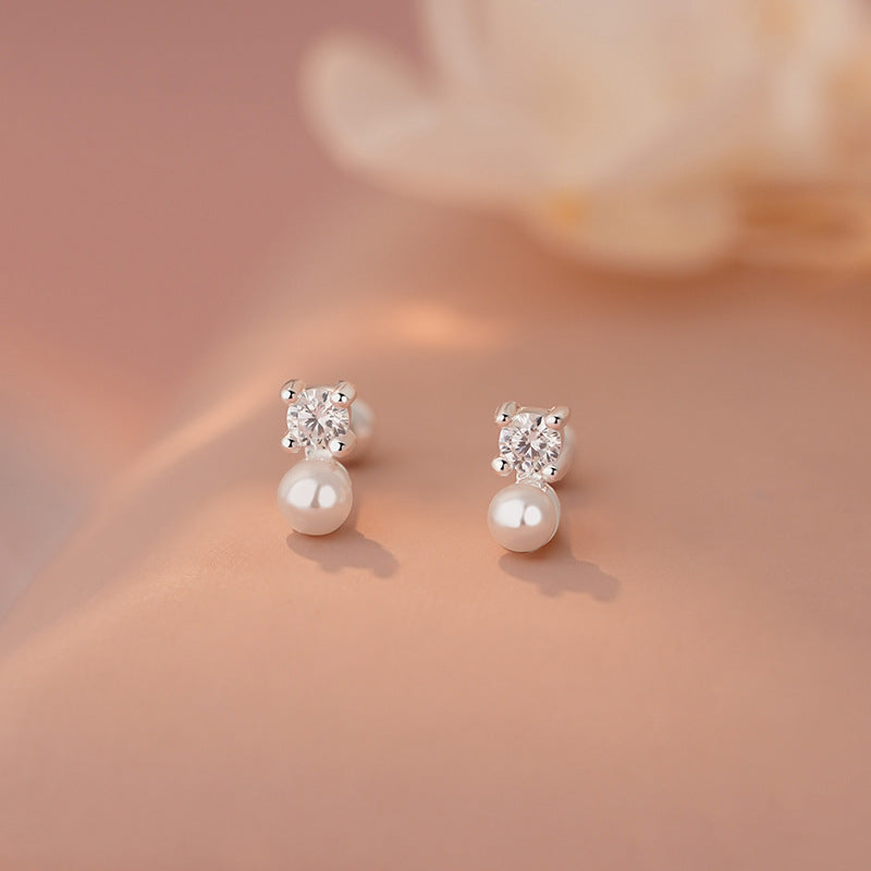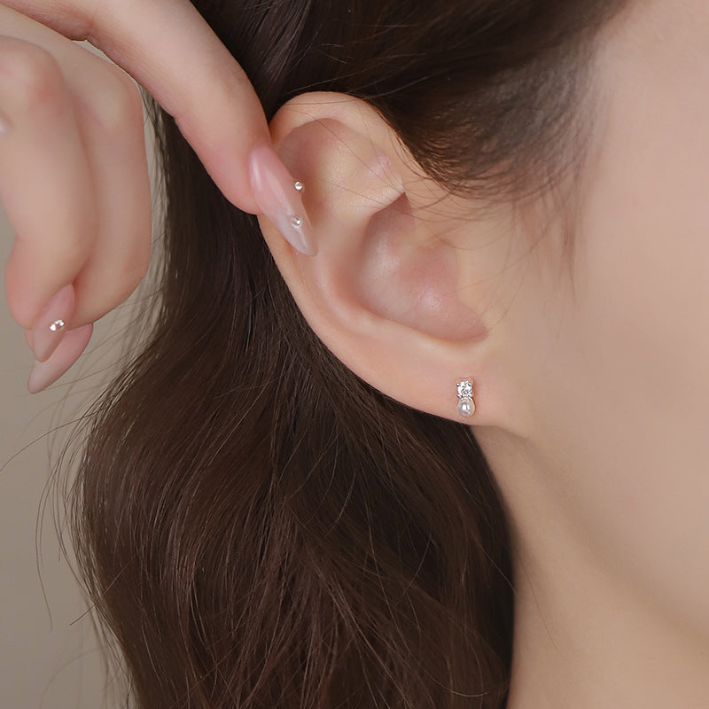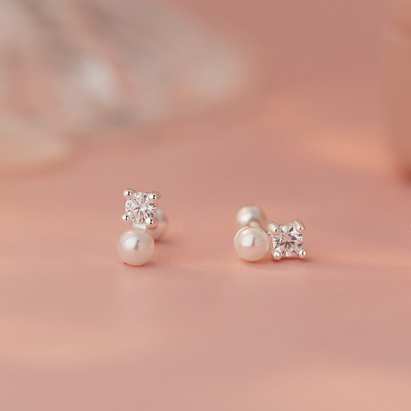 E廠【YC8687E】S999足銀鋯石珍珠螺絲耳環氣質韓版百搭簡約甜美精緻耳飾 25.04-1