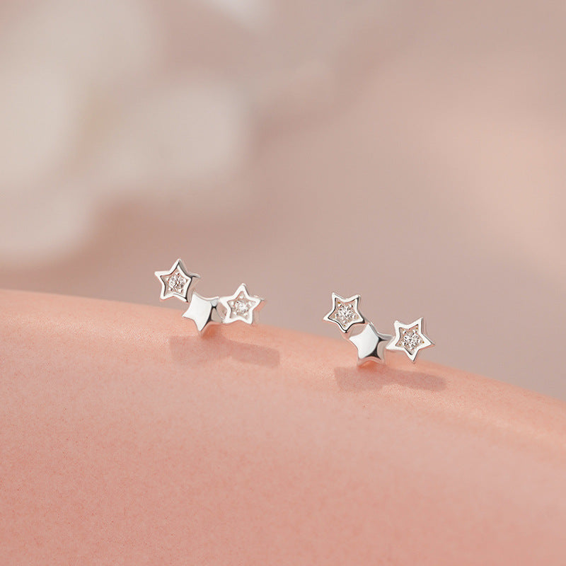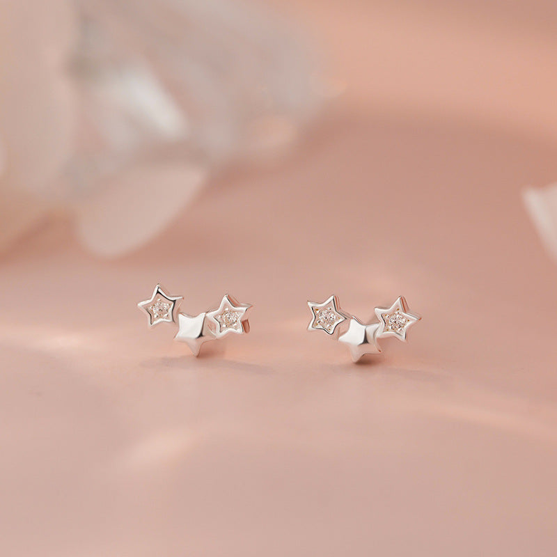 E廠【YC9026E】S999足銀新款三個五角星耳環女簡約精緻設計高級清新耳飾 25.05-5