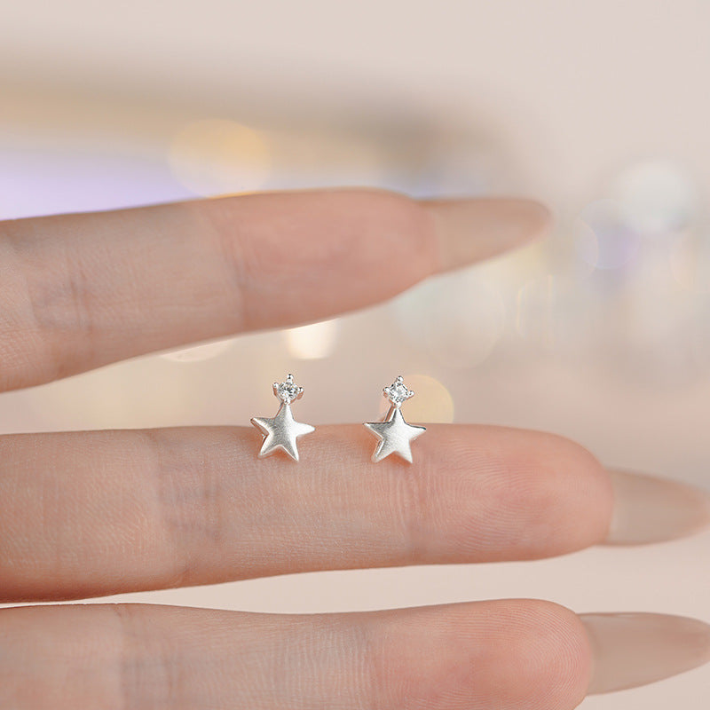 E廠【YC9175E】S999足銀輕奢焦點石五角星耳環女精緻簡約可愛小巧耳飾 25.06-2