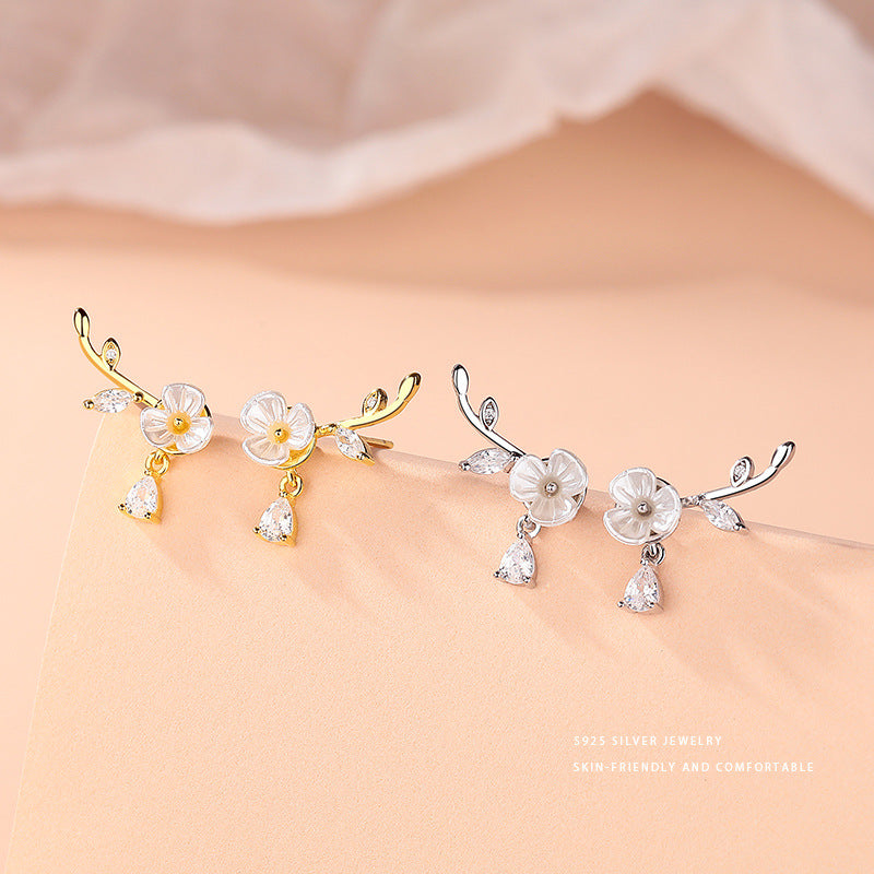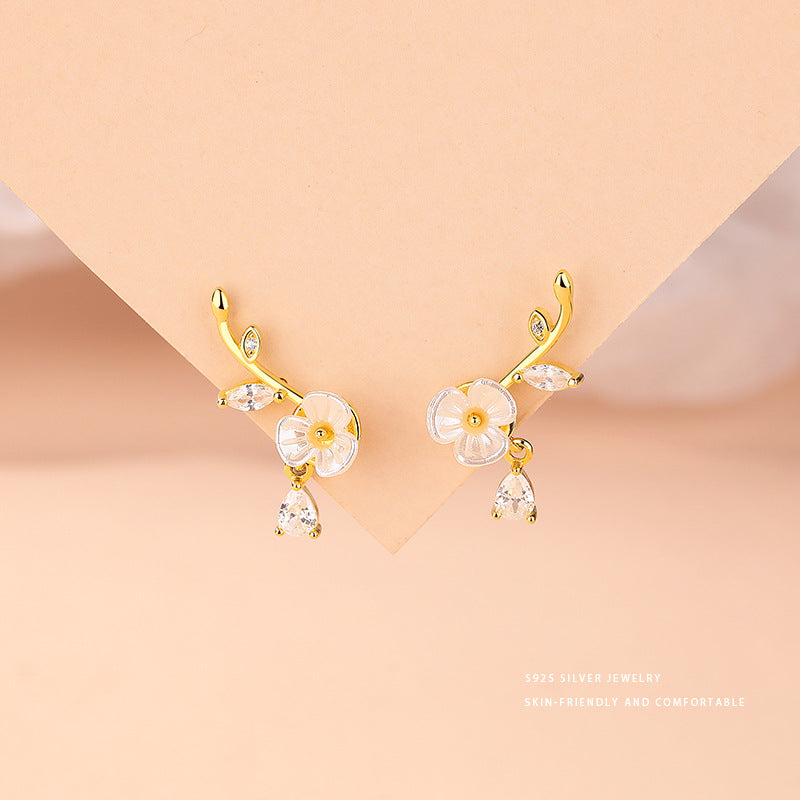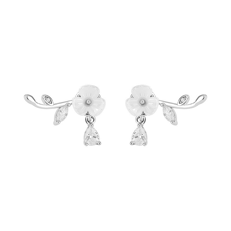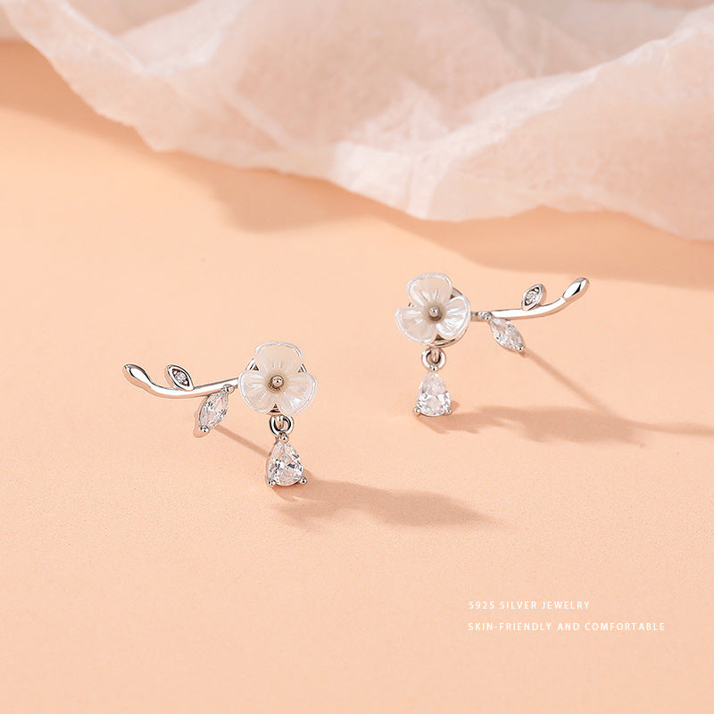 E廠【YC9297E】S925純銀精美水滴鑽花朵樹葉耳環女夢幻絕美仙女風耳飾品 24.05-4