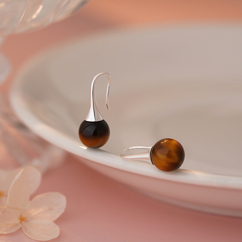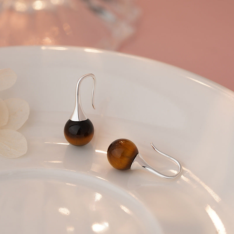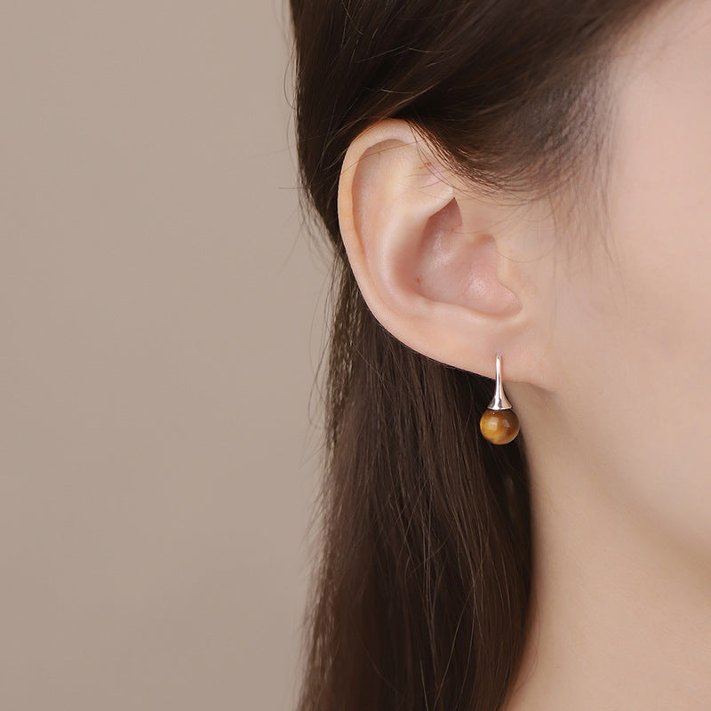 E廠【YC9338E】S925純銀輕奢虎眼石耳鉤女復古高級感個性小眾簡約耳鉤 25.04-2