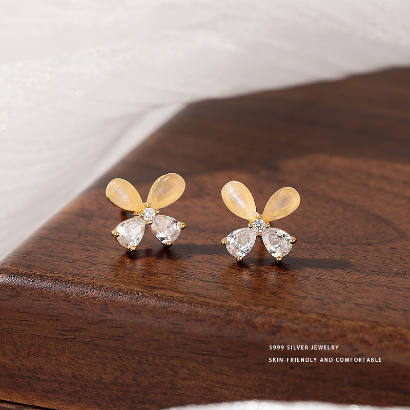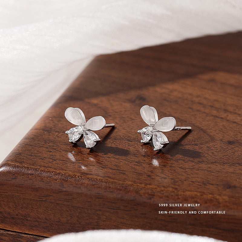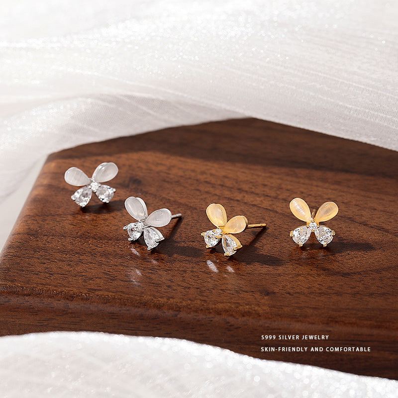 E廠【YC9398E】S999足銀精美貓眼石蝴蝶花耳環女輕奢高級設計感氣質耳飾 24.03-1
