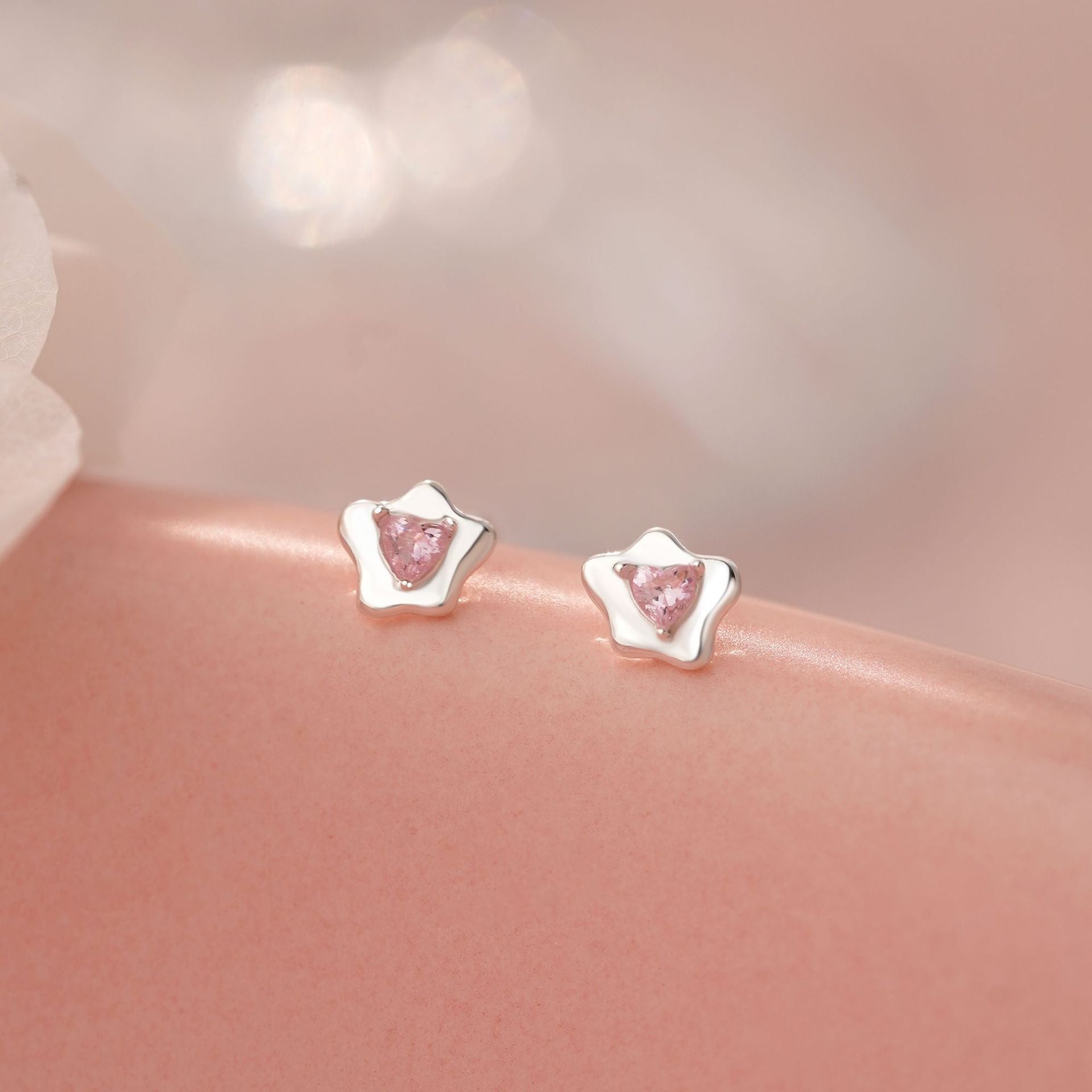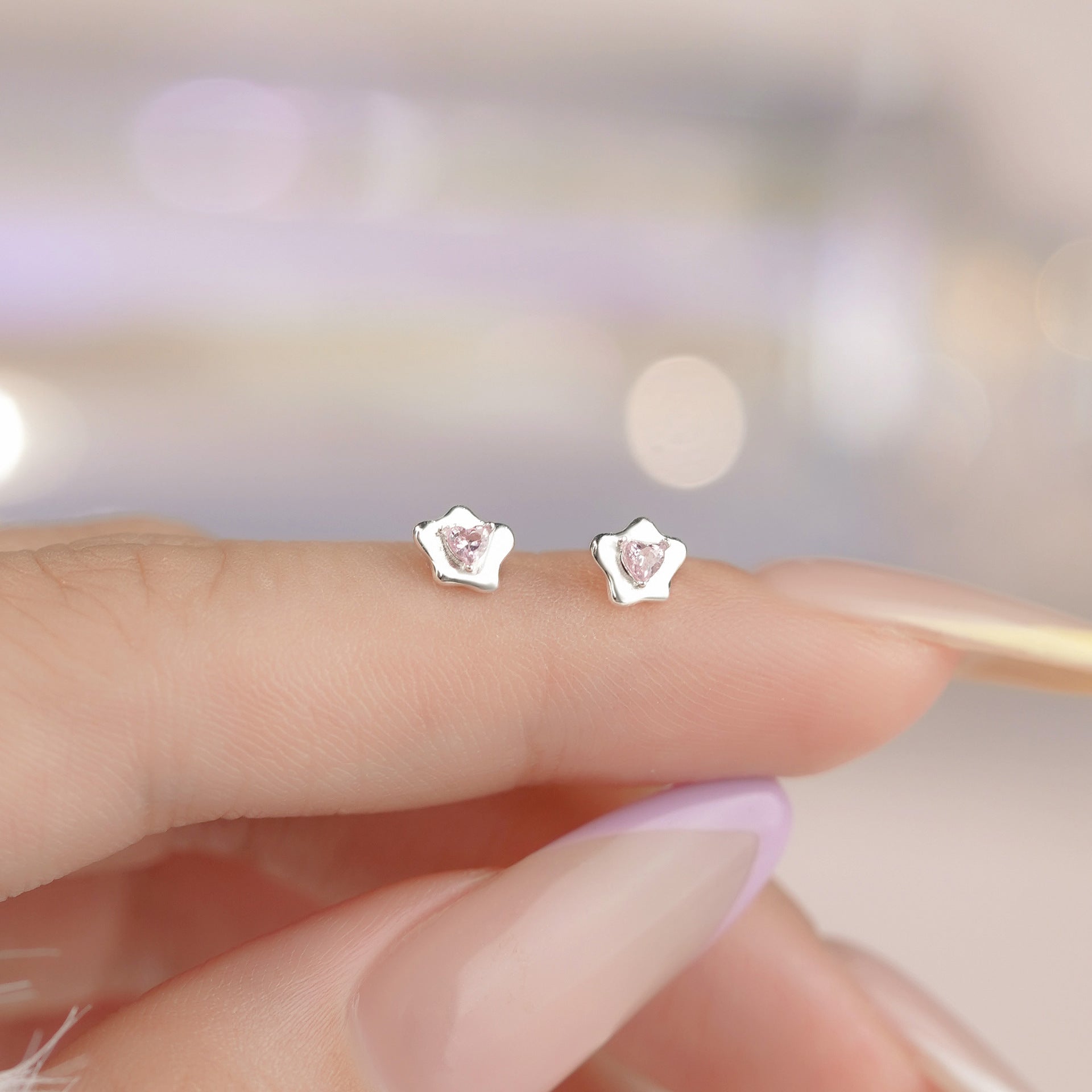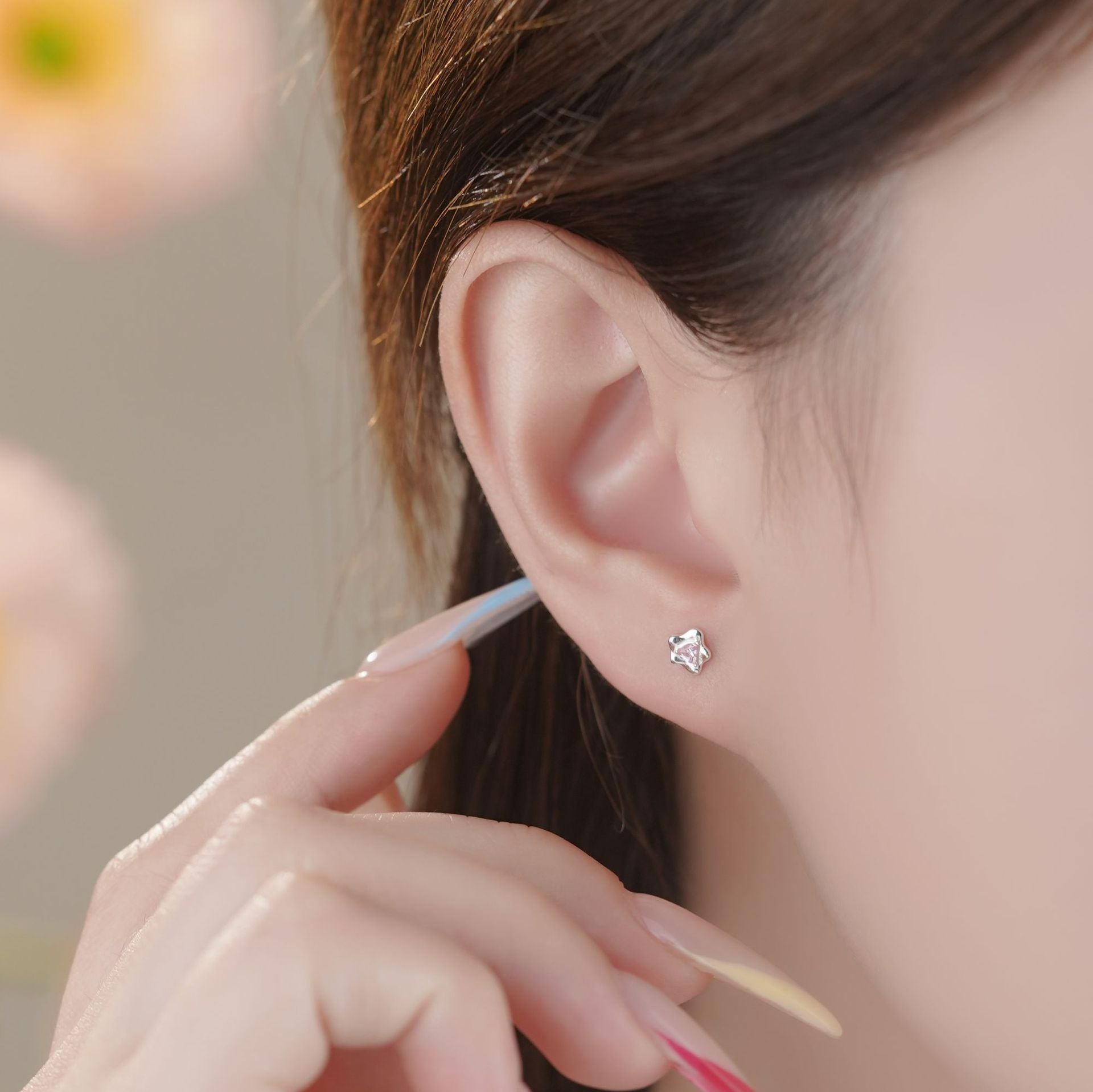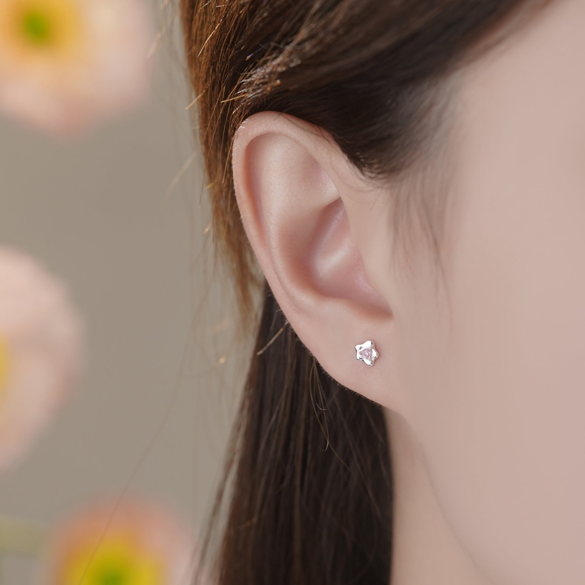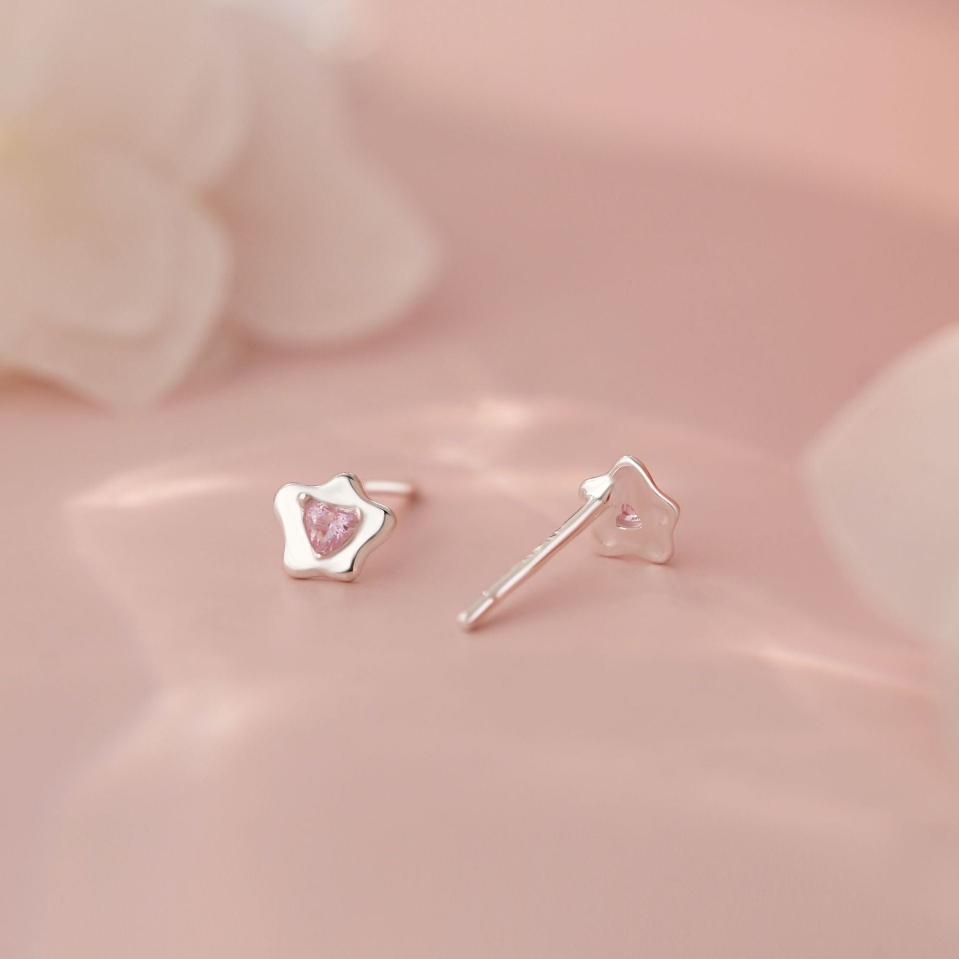 E廠【YC9462E】S999足銀粉紅星星耳環簡約自然日常小清新韓風溫柔耳飾 25.07-1