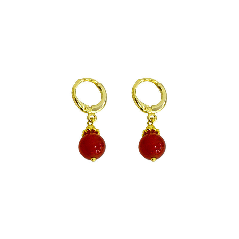 E廠【YC9491E】S925純銀國風和田玉耳扣女新中式紅瑪瑙耳圈耳環氣質耳飾 24.05-1