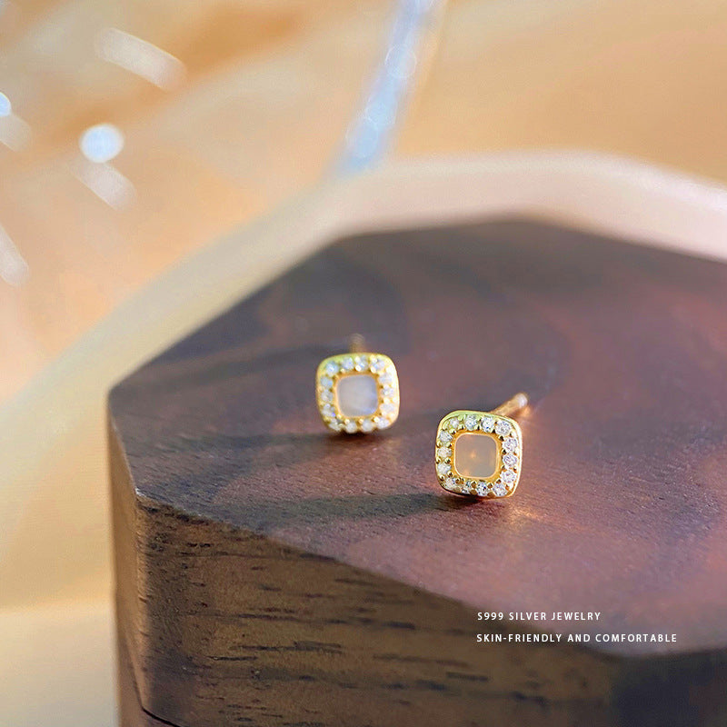 E廠【YC9507E】S999足銀簡約鑲鑽方形耳環女輕奢小香風幾何高級感耳飾品 24.02-3
