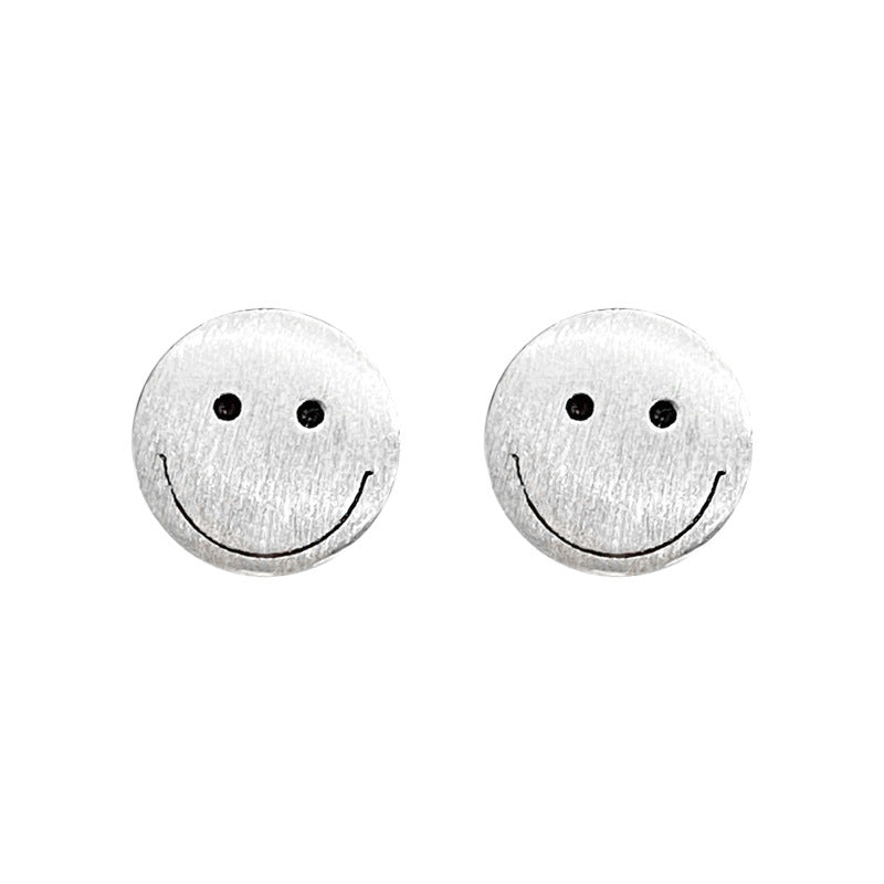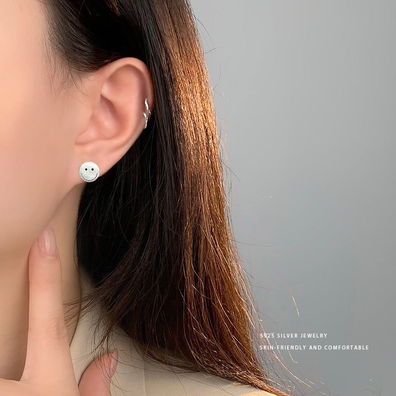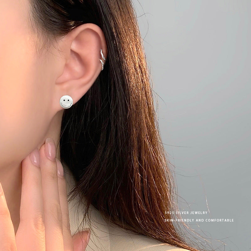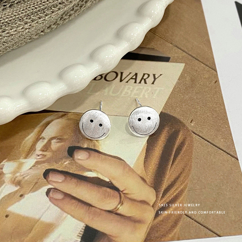 E廠【YC9519E】S925純銀可愛拉絲笑臉耳環女甜美百搭小眾設計感耳環 24.02-3