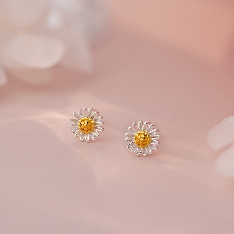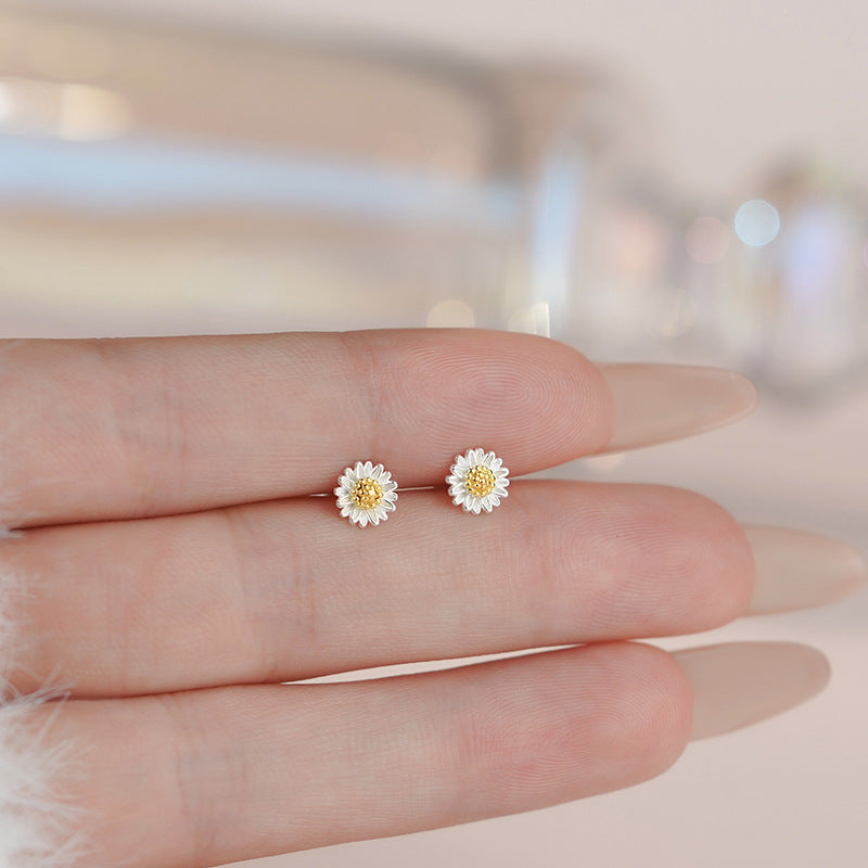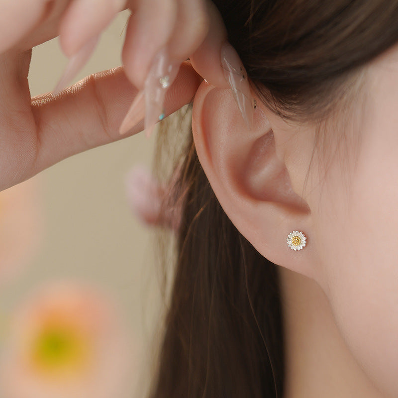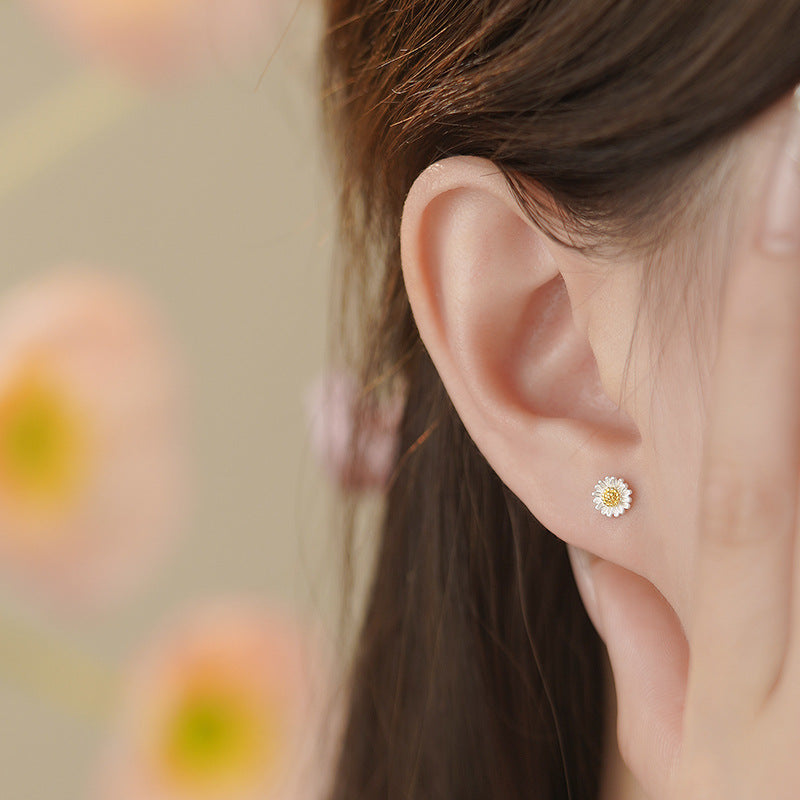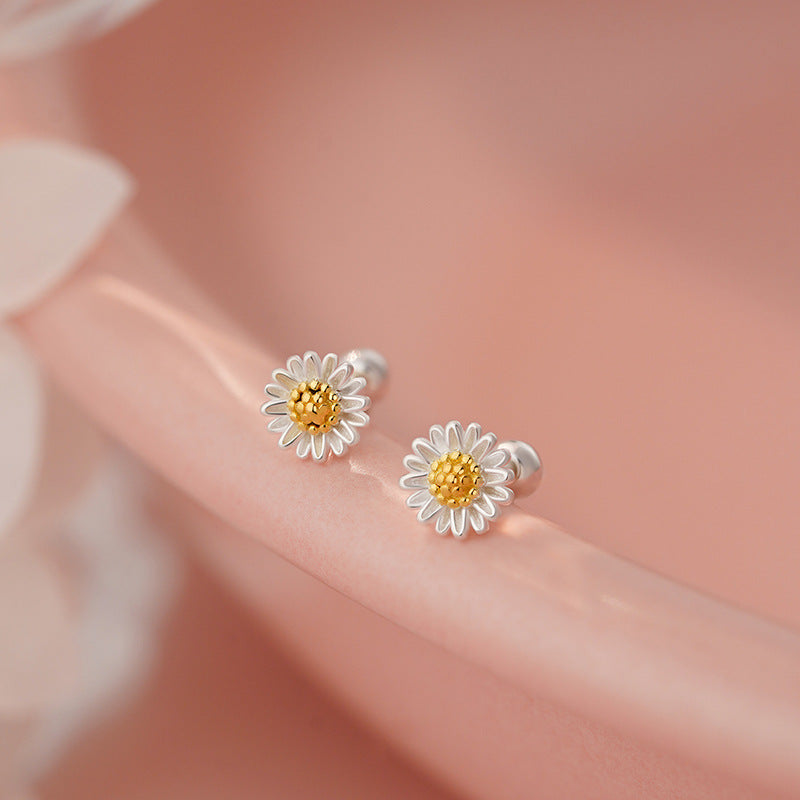E廠【YC9522E】S999足銀文藝菊花螺絲耳環清新優雅精緻韓風精美小眾耳飾 25.06-3