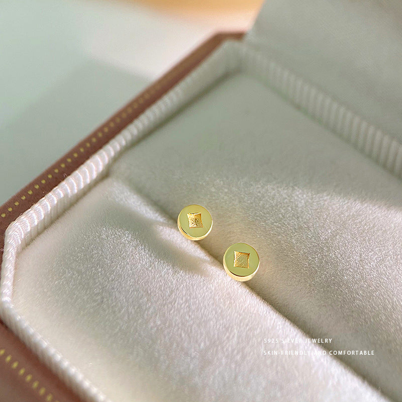 E廠【YC9554E】S925純銀本命年銅錢耳環小眾設計感小巧中式百搭耳環 24.02-3