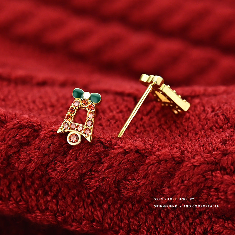 E廠【YC9566E】S999足銀甜美節慶氣氛感聖誕鈴鐺耳環秋冬輕奢高級感耳飾新款 24.01-2