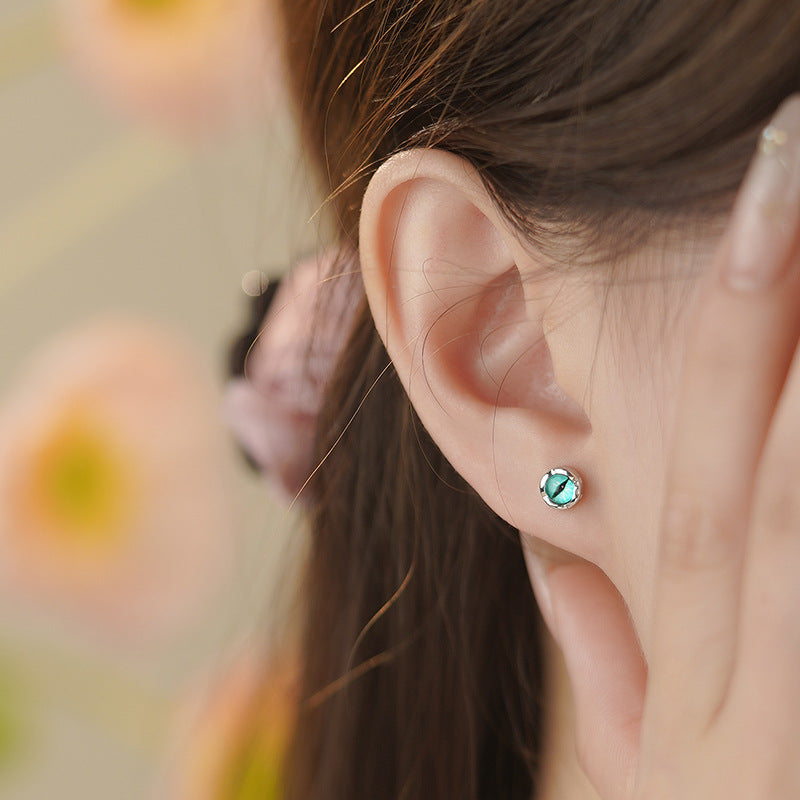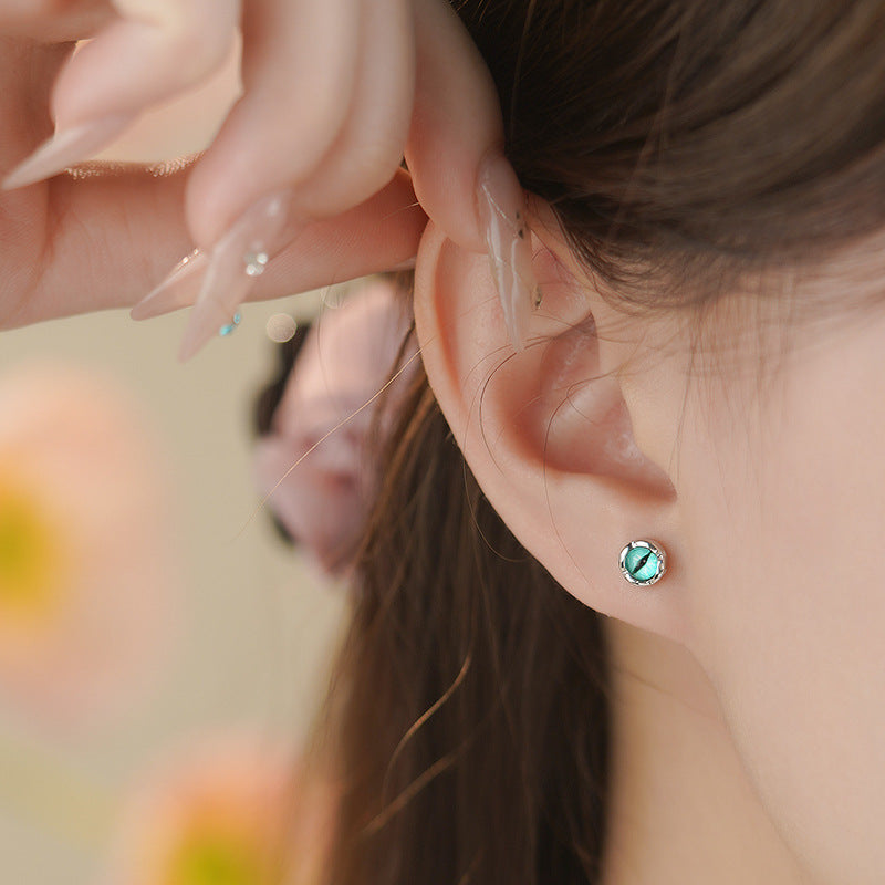 E廠【YC9572E】S925純銀輕奢貓眼耳環女原創設計簡約精緻設計創意耳飾 25.06-2