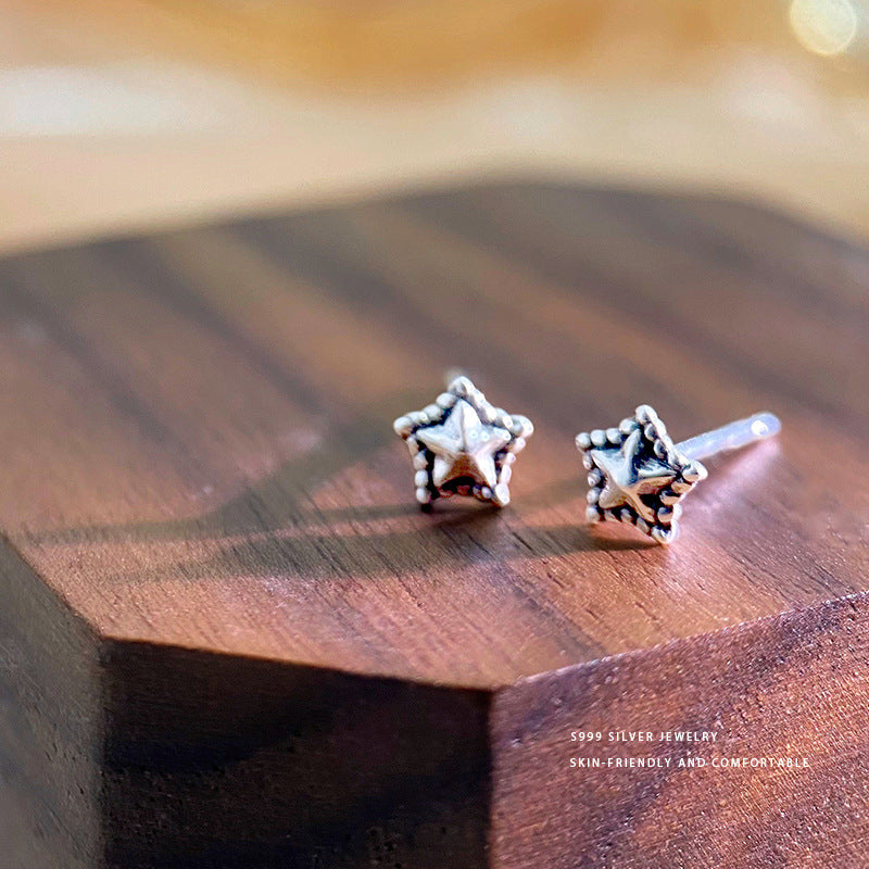 E廠【YC9591E】S999足銀高級感星星耳環女時尚個性復古風五角星耳環耳環 24.03-3