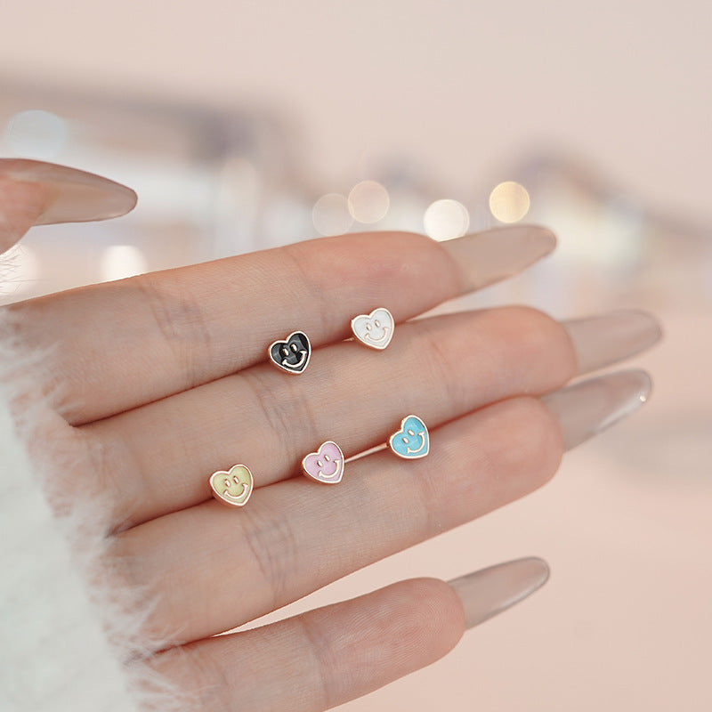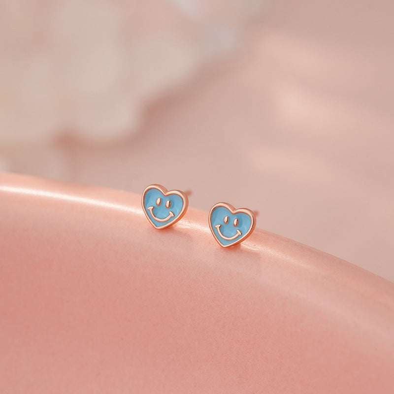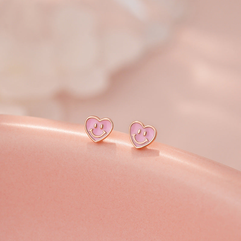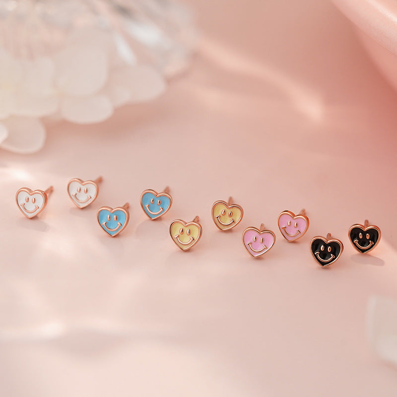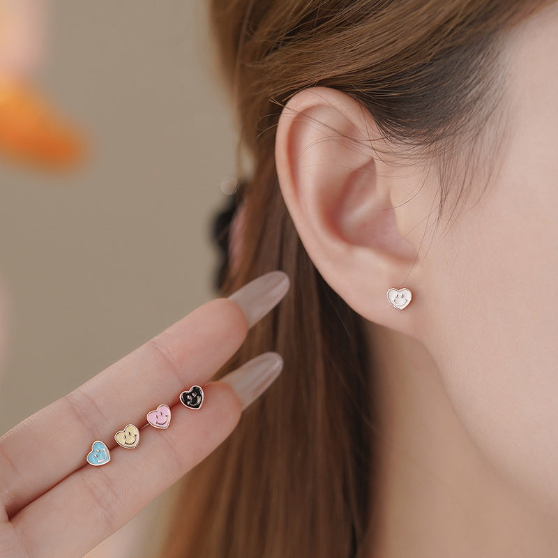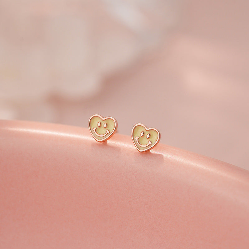 E廠【YC9611E】S999足銀愛心笑臉耳環清新甜美文藝風少女日常養耳洞耳飾 25.05-4