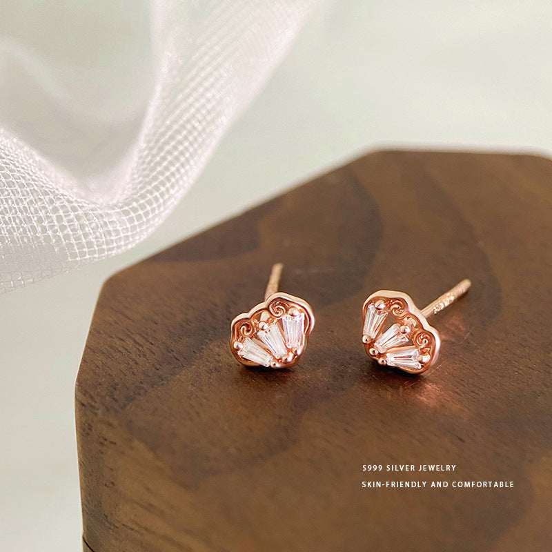 E廠【YC9647E】S999足銀小巧如意祥雲耳環女精緻氣質百搭新中式耳環耳環 24.02-1
