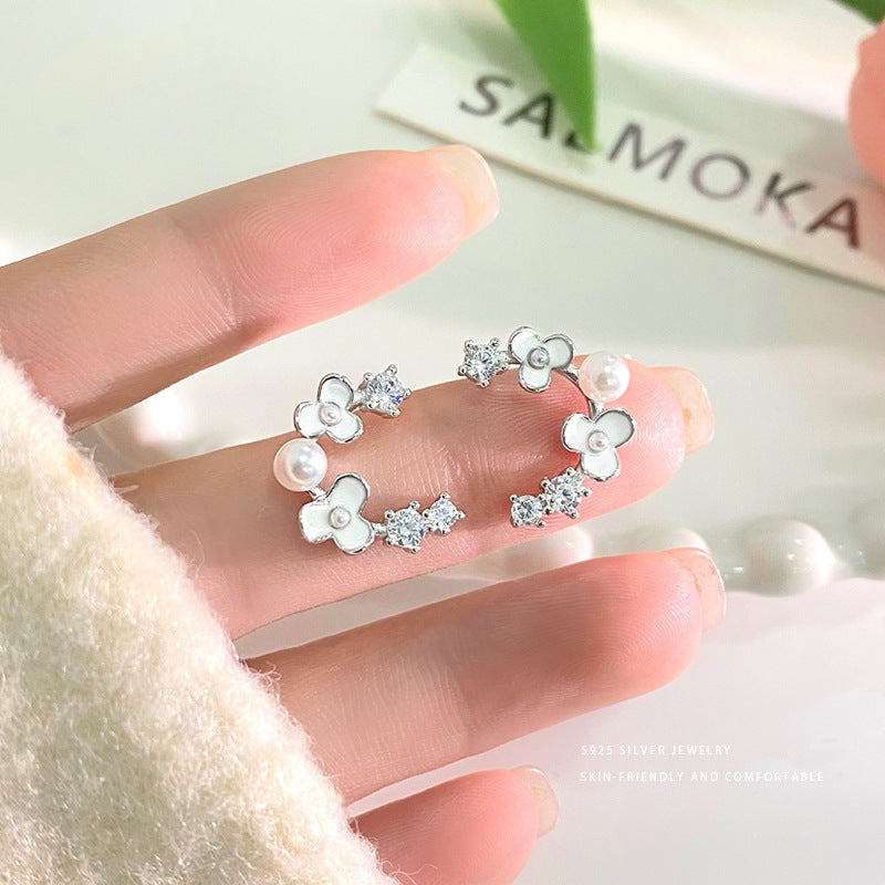 E廠【YC9650E】S925純銀甜美花朵珍珠耳環女清新百搭精緻仙女風耳環 24.02-3