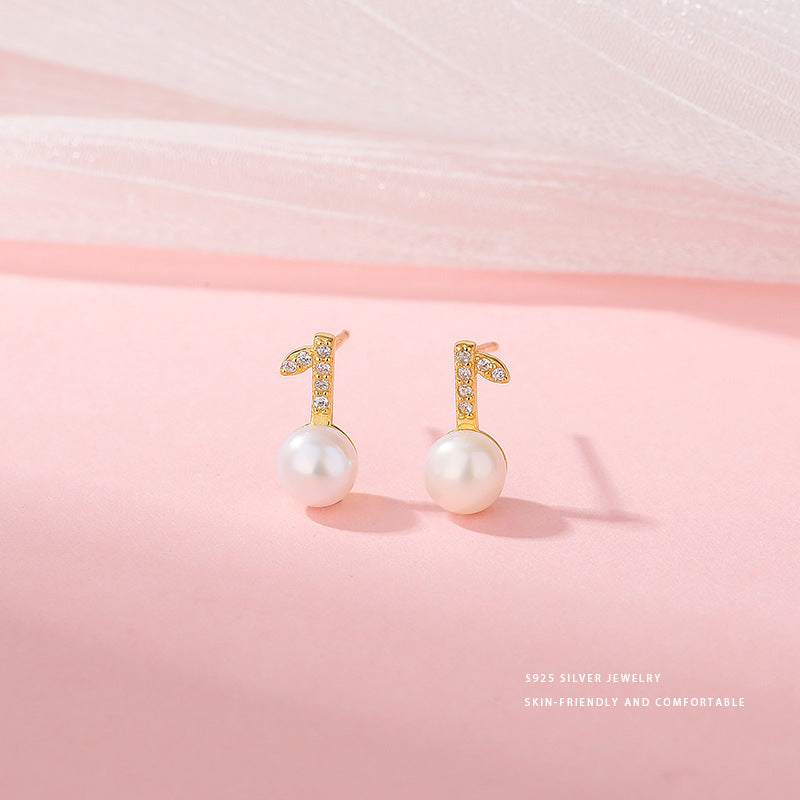 E廠【YC9656E】S925純銀新中式竹葉珍珠耳環女輕奢國風高級感設計耳飾 24.03-1