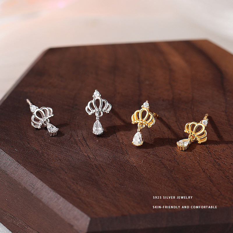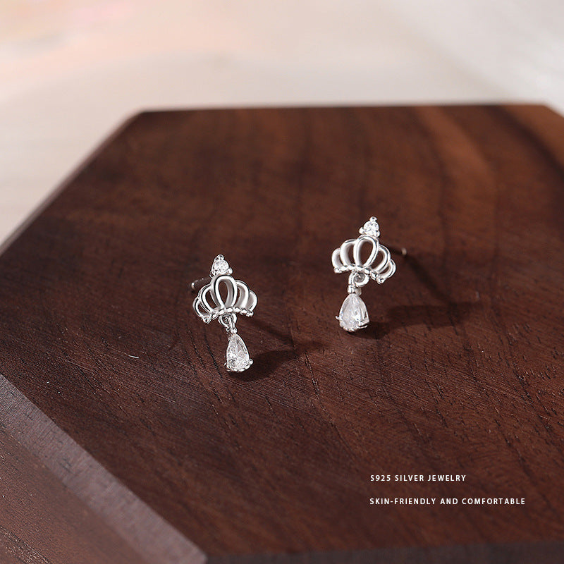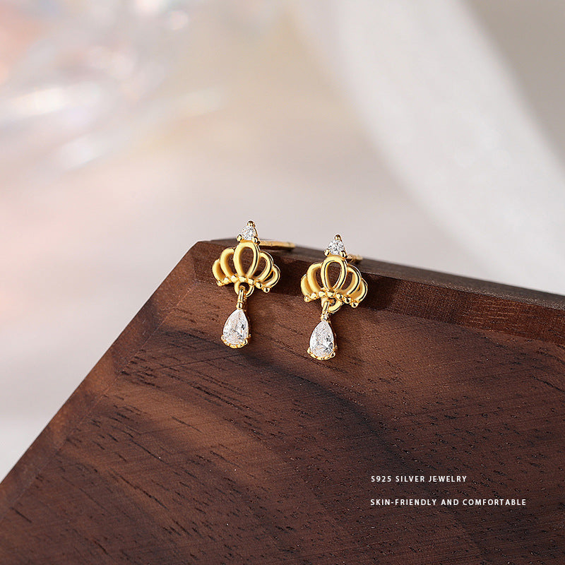E廠【YC9677E】S925純銀公主水滴皇冠耳環女時尚輕奢高級感柔美小耳飾 24.03-1