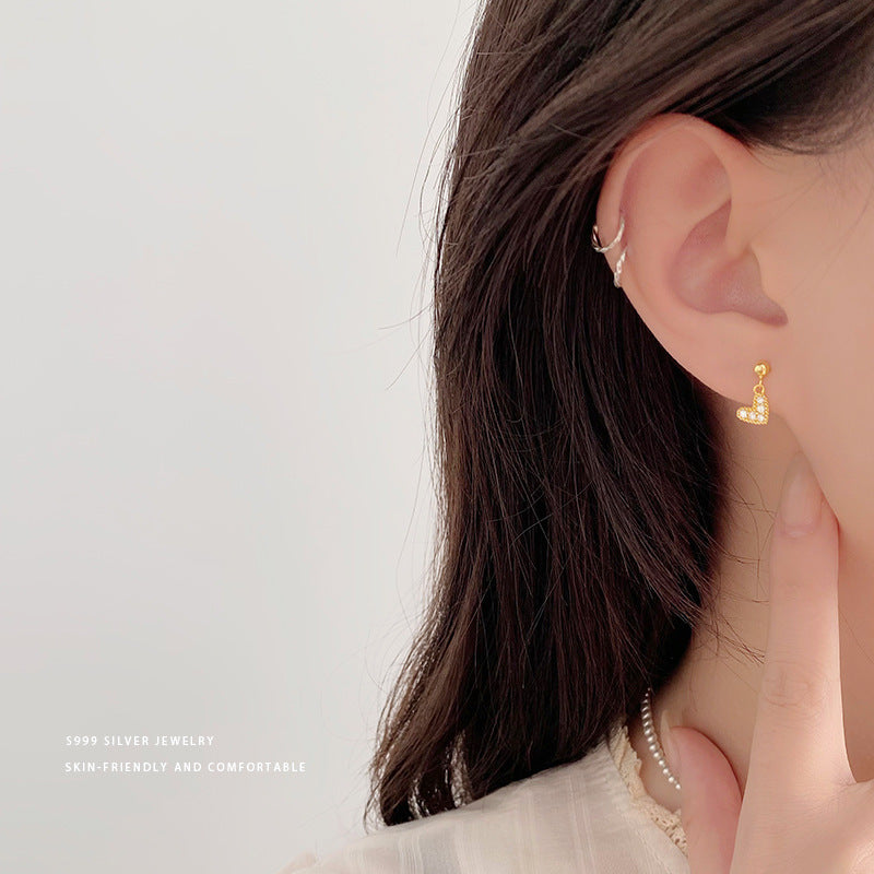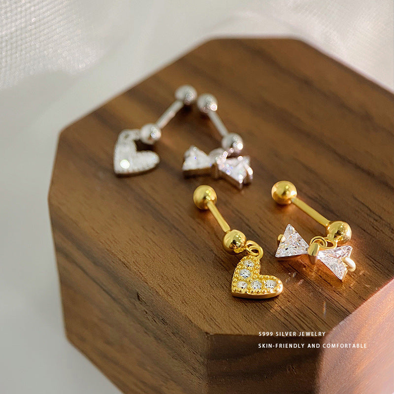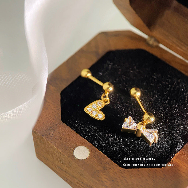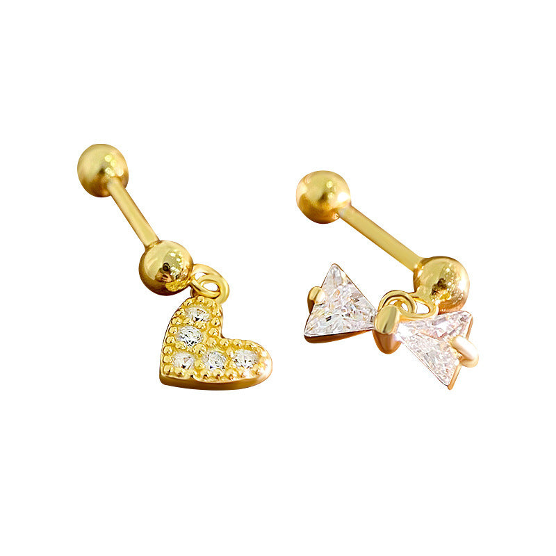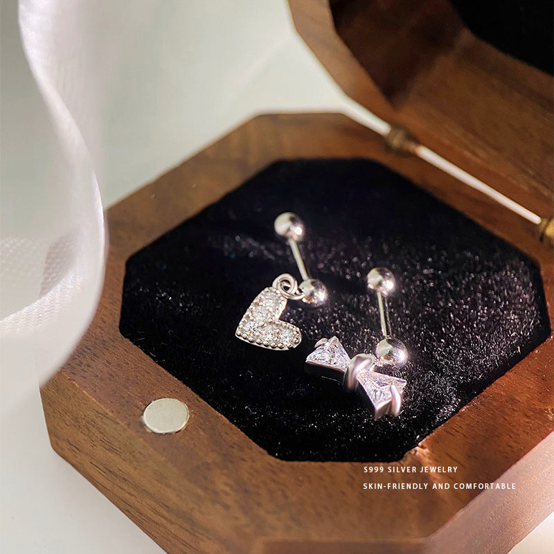E廠【YC9727E】S999足銀甜美不對稱蝴蝶結愛心耳環女輕奢可愛高級感耳飾 24.02-3