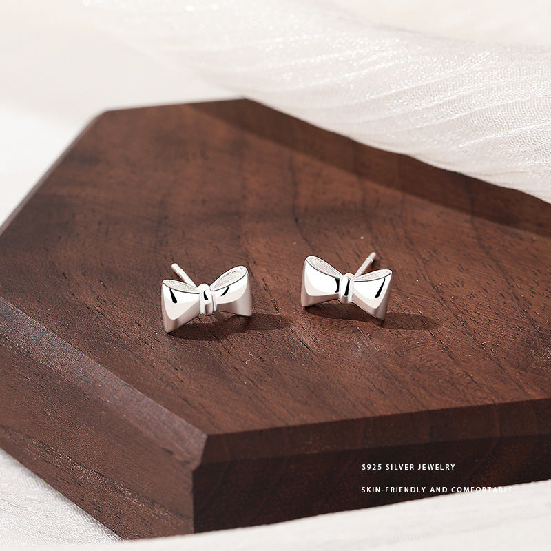 E廠【YC9729E】S925純銀簡約光面蝴蝶結耳環女百搭甜美小眾設計感耳飾品 24.03-1