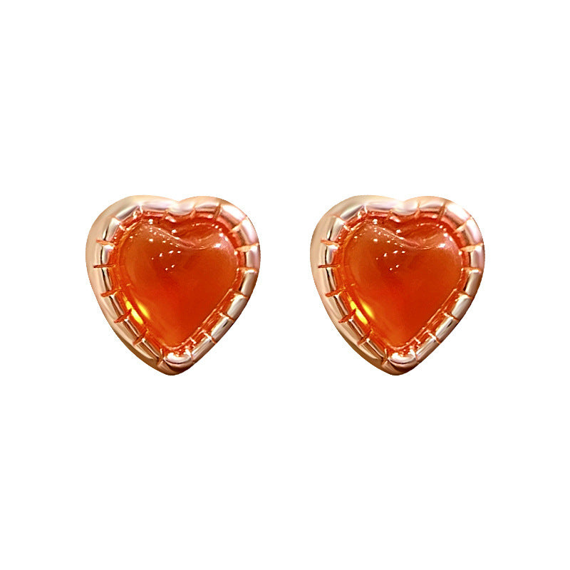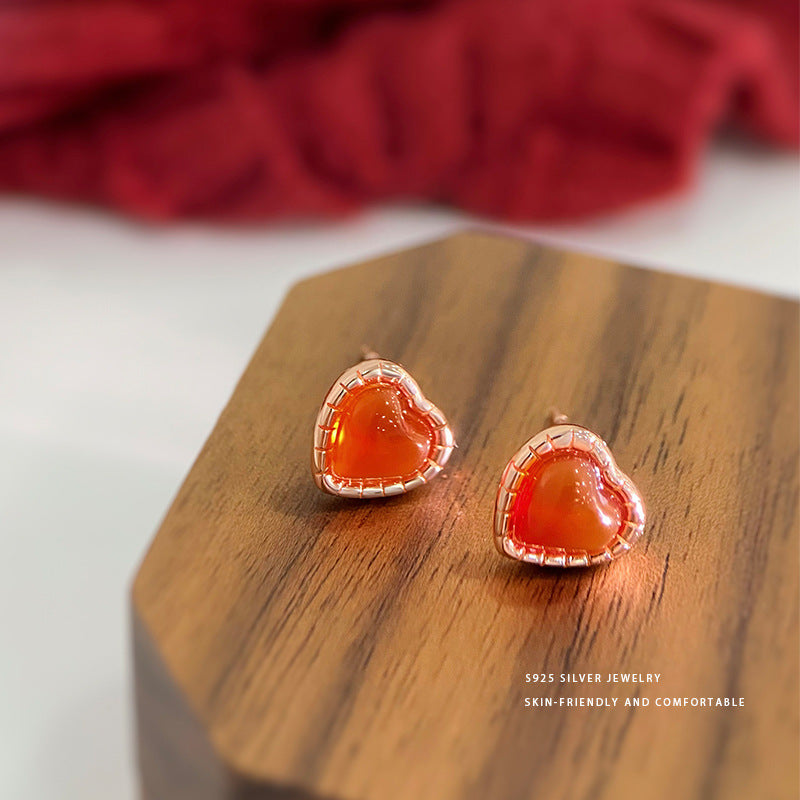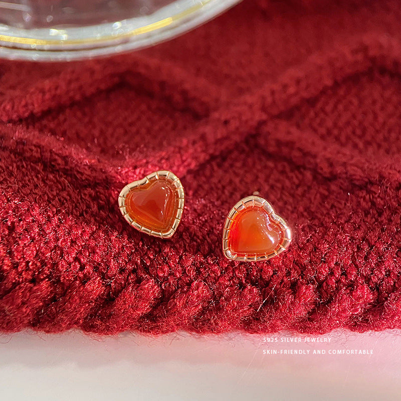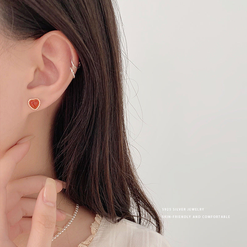 E廠【YC9740E】S925純銀甜美紅瑪瑙愛心耳環女輕奢高級感顯白氣質耳飾品 24.02-3