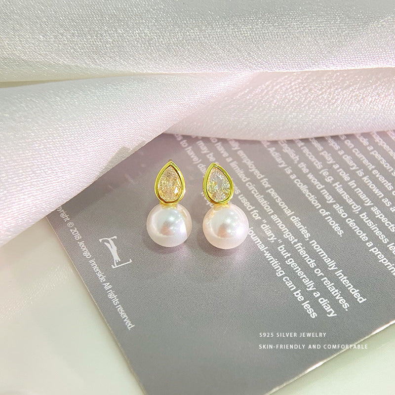 E廠【YC9761E】S925純銀精美水滴鋯石珍珠耳環女輕奢高級感氣質通勤耳飾 24.01-3