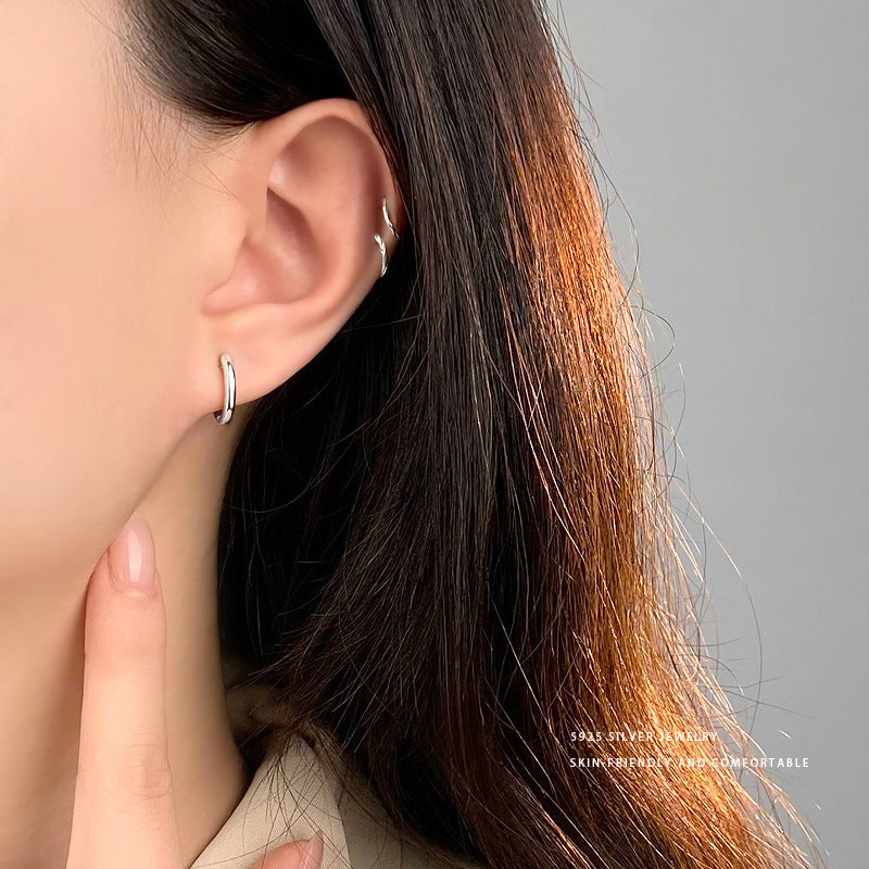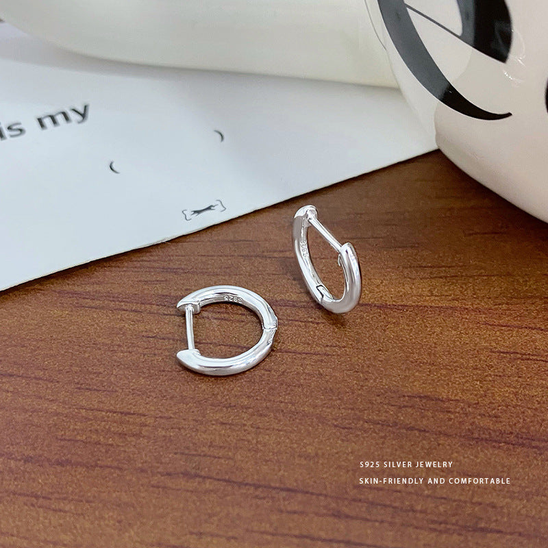 E廠【YC9779E】S925純銀簡約圓扣女百搭時尚通勤日常素圈款耳環耳環 24.02-3