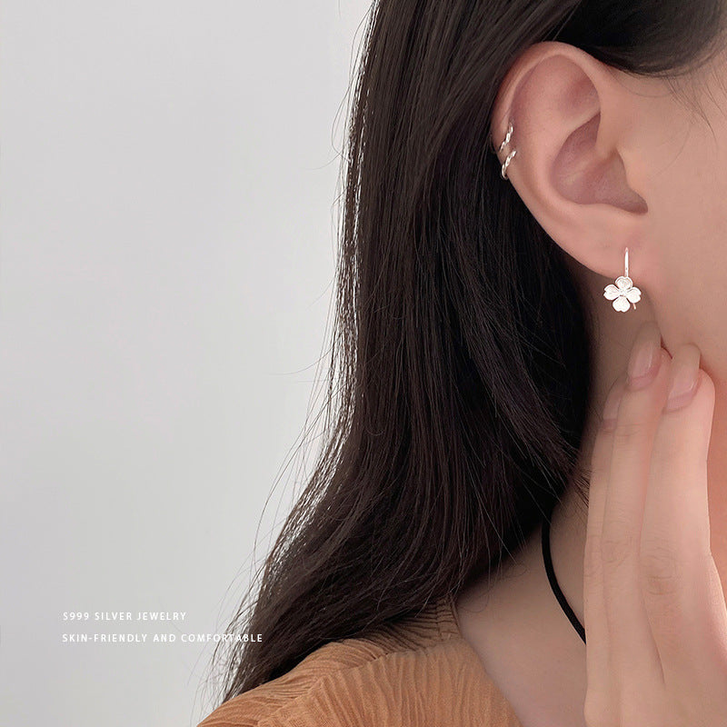 E廠【YC9799E】S999足銀甜美四葉花朵耳環女氣質高級感小眾設計感耳環 24.01-3