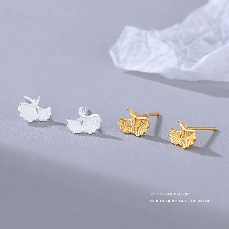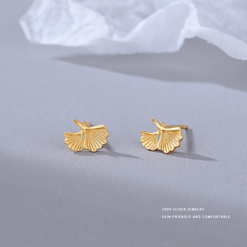 E廠【YC9813E】S999足銀小巧杏葉耳環女輕奢精緻百搭優雅氣質耳環耳環 24.03-3