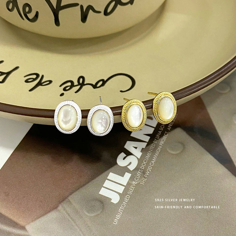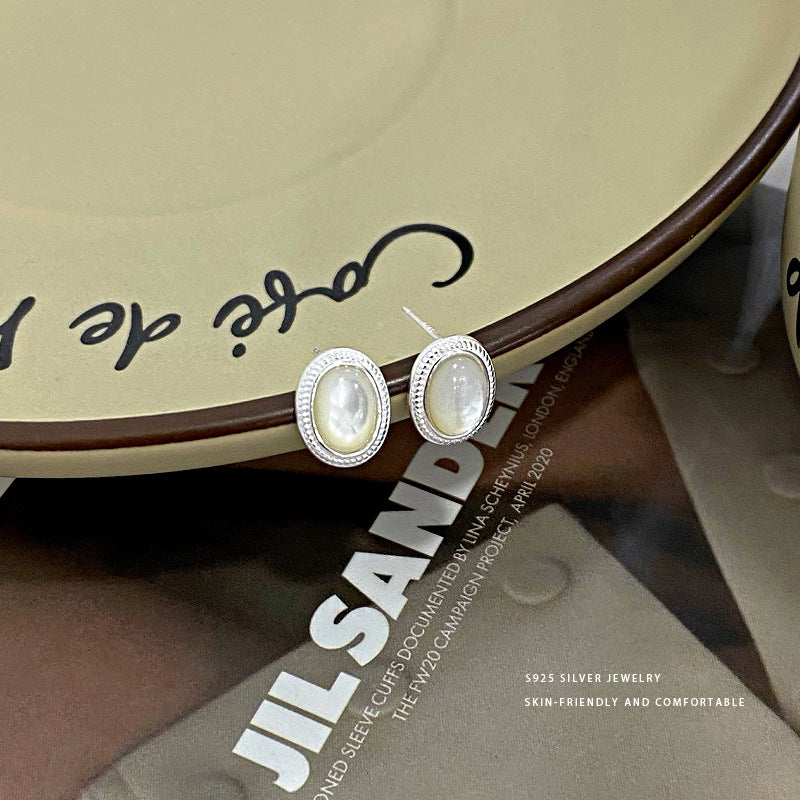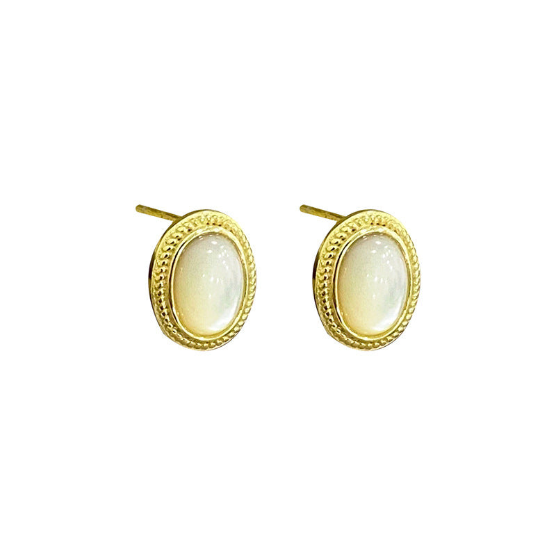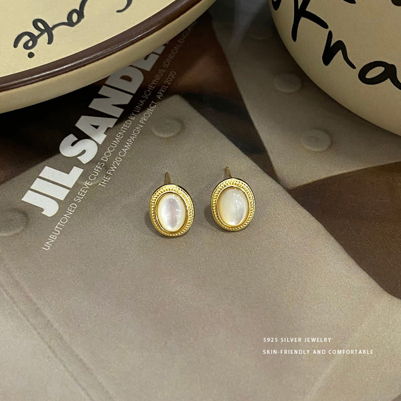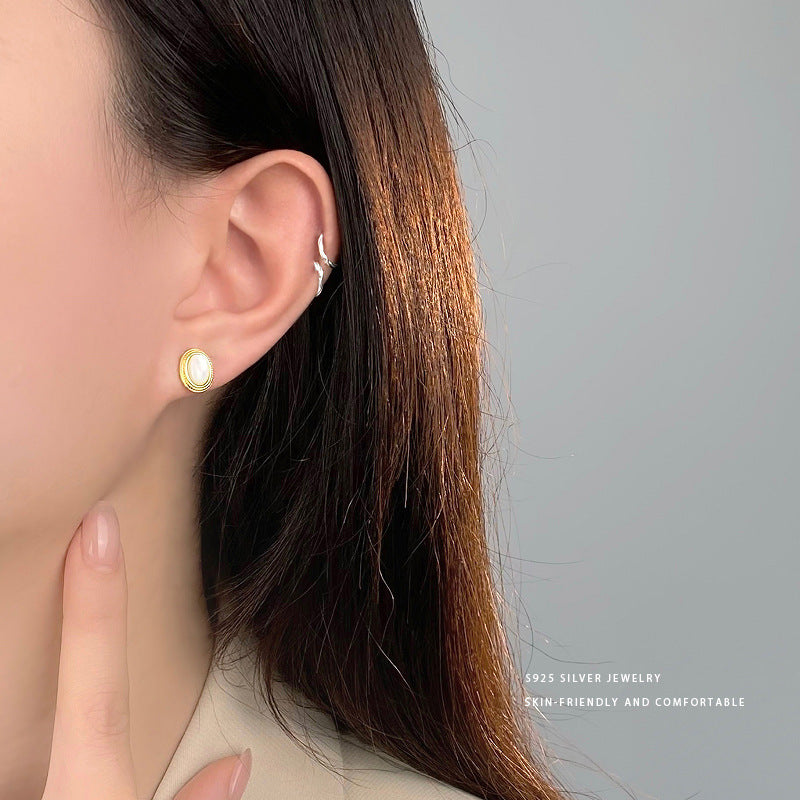 E廠【YC9818E】S925純銀精緻橢圓形耳環女法式復古高級感設計感耳環 24.02-3