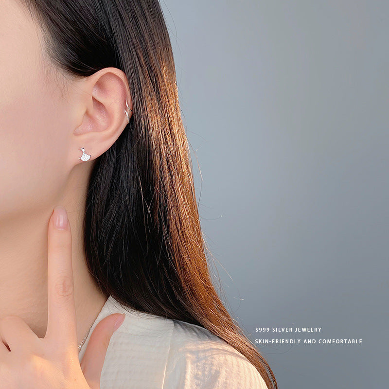 E廠【YC9824E】S999足銀鑲鑽杏葉耳環女氛圍感輕奢高級質感氣質耳環 24.03-3