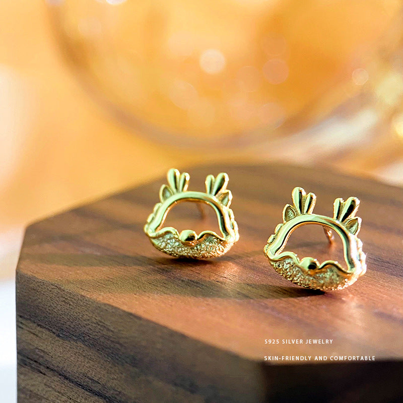 E廠【YC9829E】S925純銀可愛鏤空小福龍耳環女新中式動物設計感耳環耳環 24.05-2