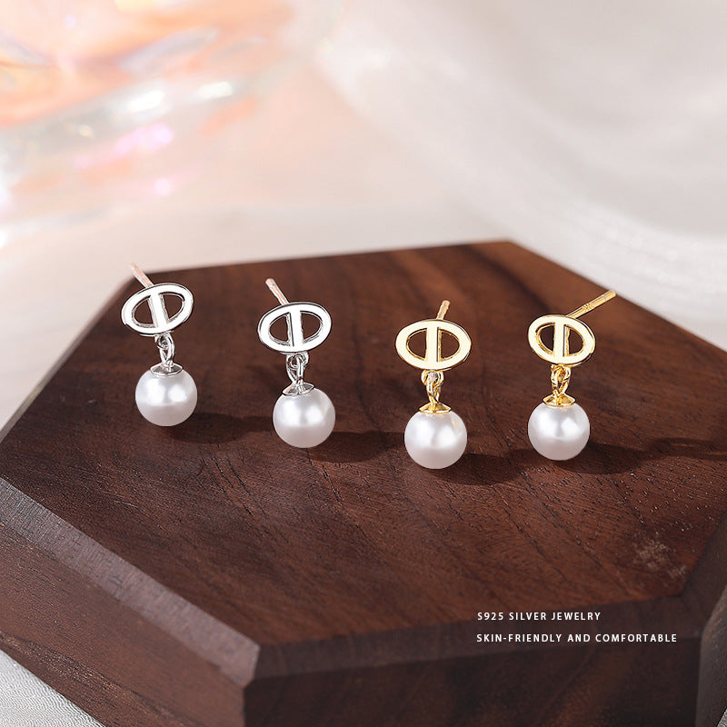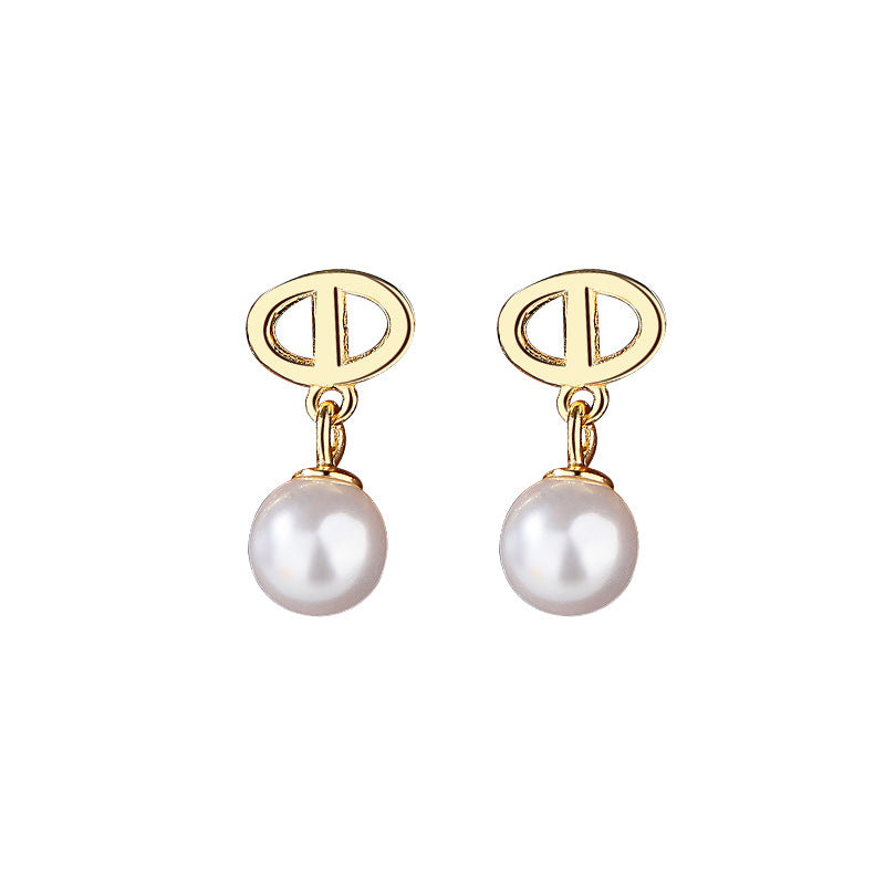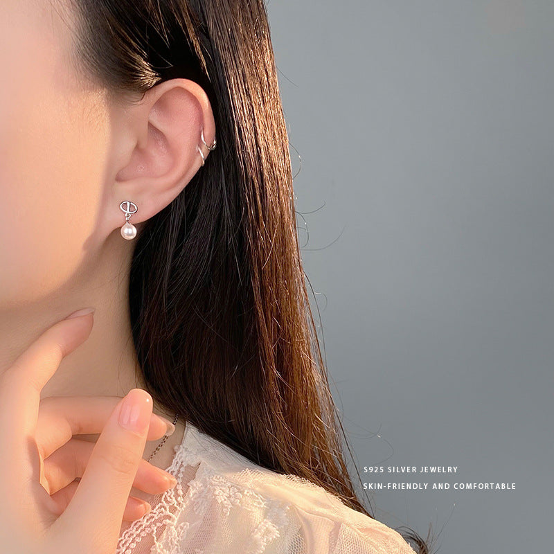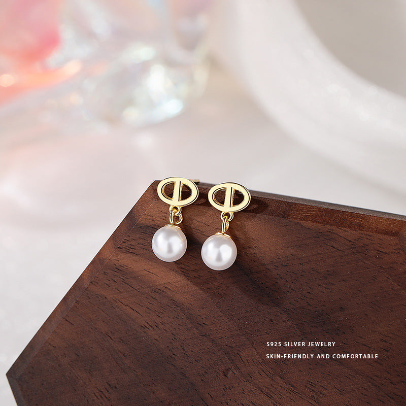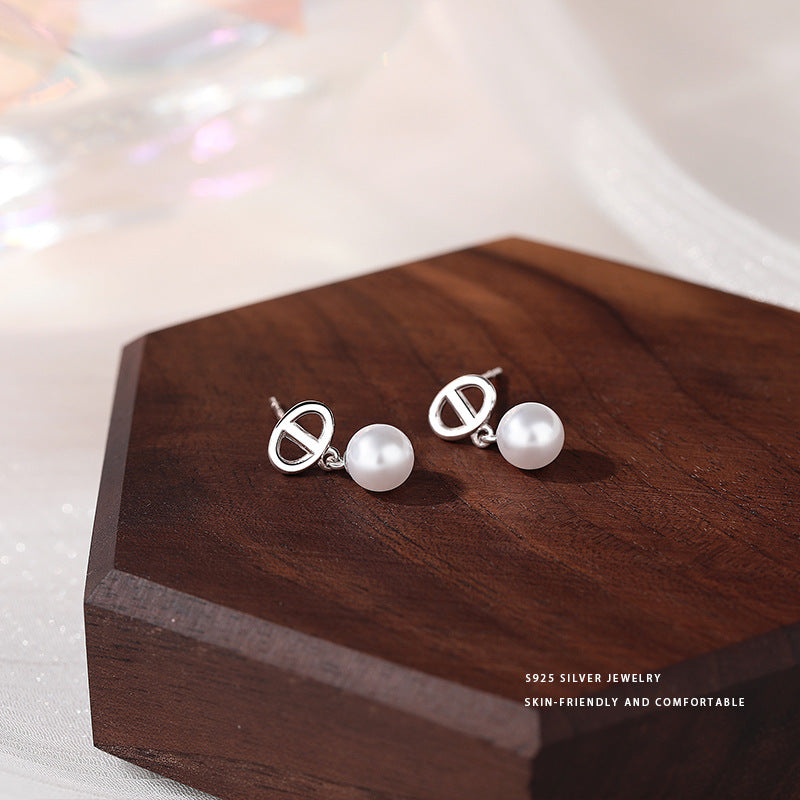 E廠【YC9852E】S925純銀簡約豬鼻子珍珠耳環女輕奢高級感時尚氣質耳飾品 24.03-1