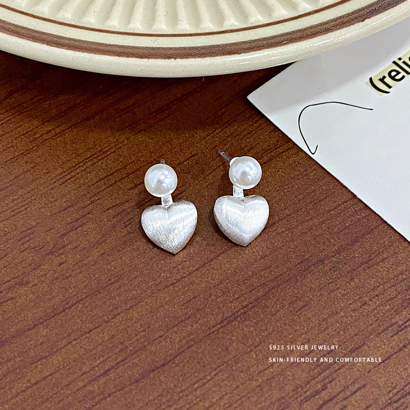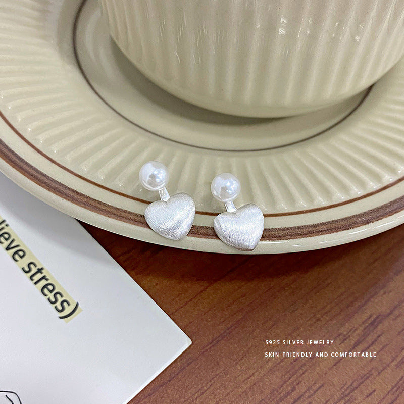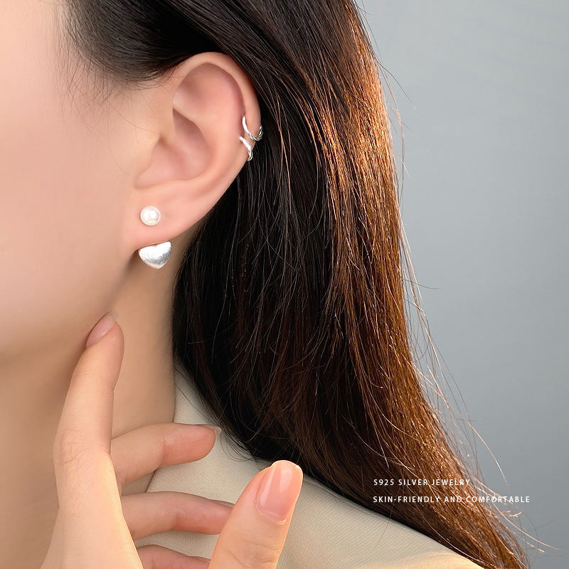 E廠【YC9869E】S925純銀輕奢珍珠愛心後掛式耳環女高級感設計感百搭耳飾 24.02-3