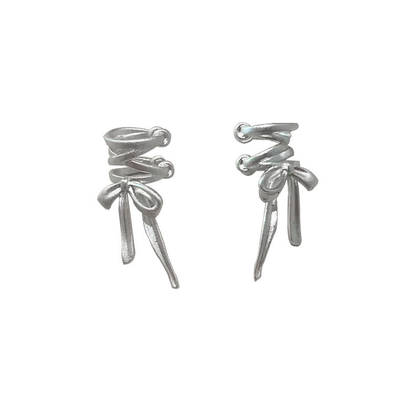 E廠【YC9872E】S925純銀甜美綁帶蝴蝶結耳夾女芭蕾風高級感無耳洞耳飾 24.02-1