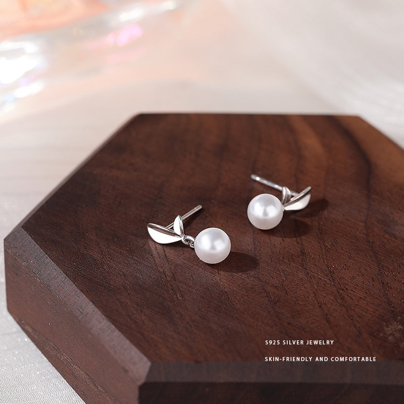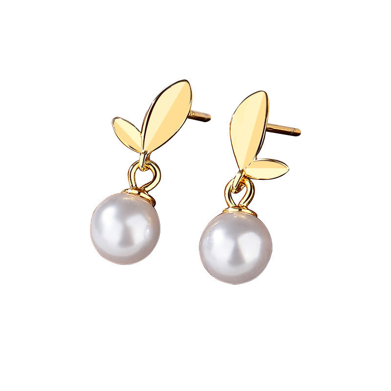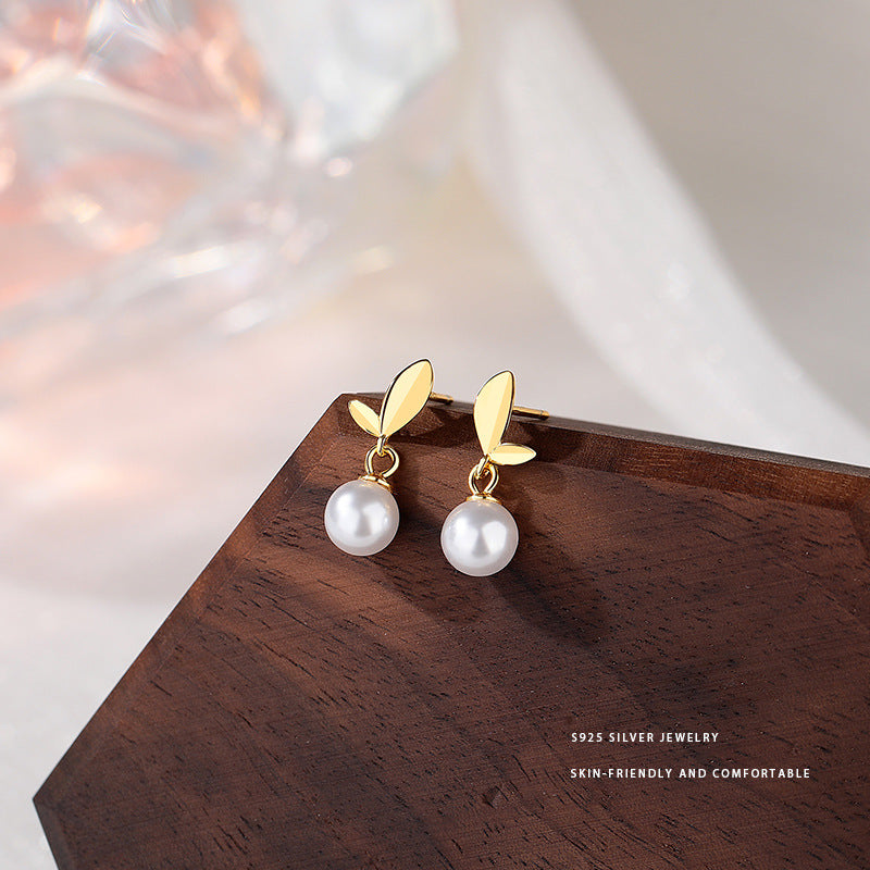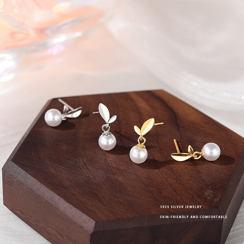 E廠【YC9888E】S925純銀優雅葉珍珠耳環女高級感時尚通勤百搭耳飾 24.03-1
