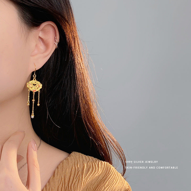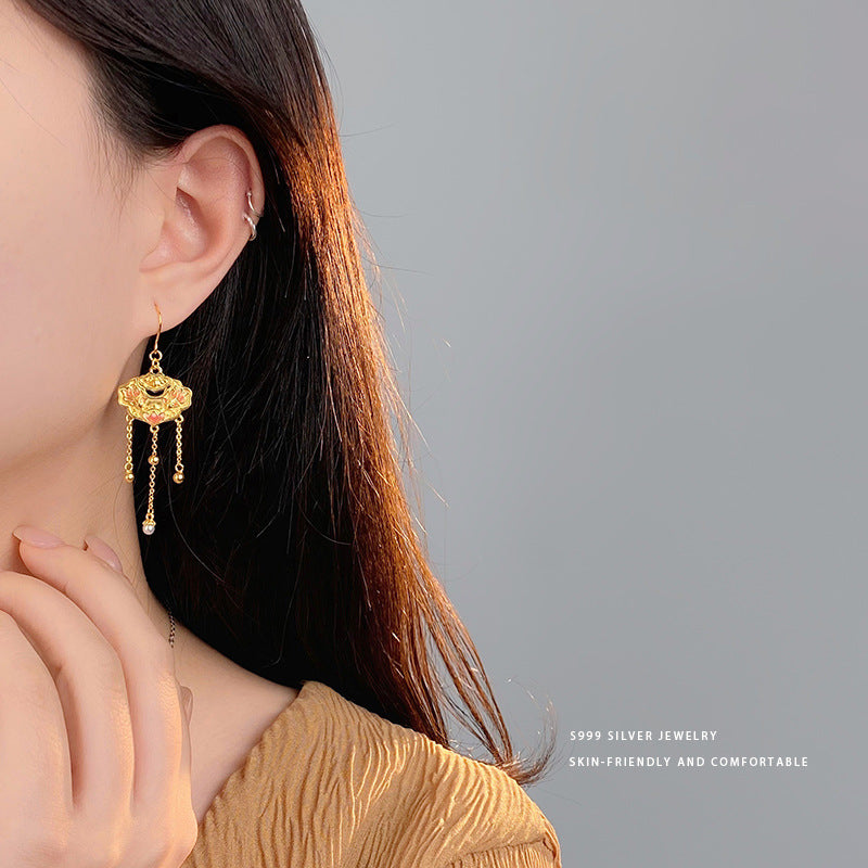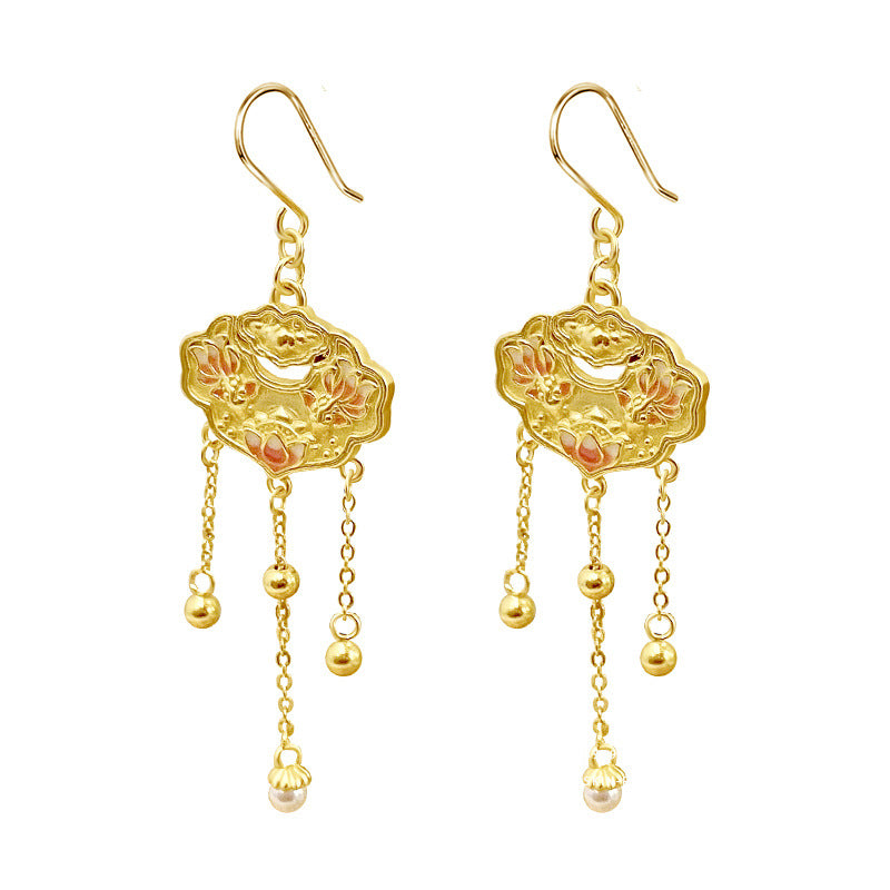 E廠【YC9908E】S999足銀本命年雙魚蓮花平安鎖珍珠耳墜女國風高級感耳飾 24.02-3