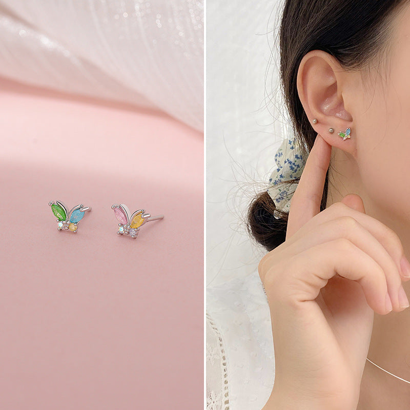 E廠【YC9961E】S999足銀鋯石蝴蝶高級設計感氣質甜美少女小清新耳環 24.07-1