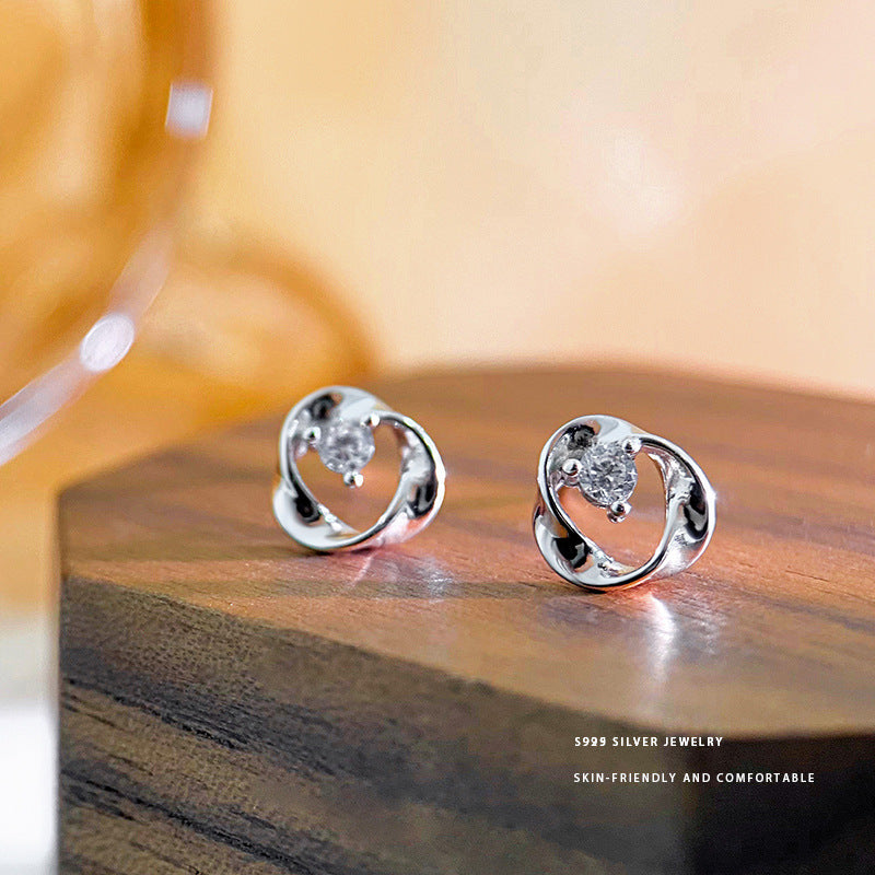 E廠【YC9963E】S999足銀時尚莫比烏斯環耳環女輕奢簡約高級感新款耳環品 24.04-3