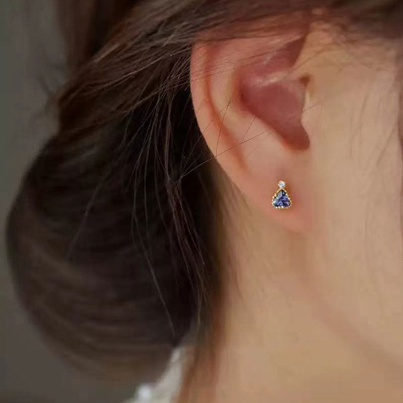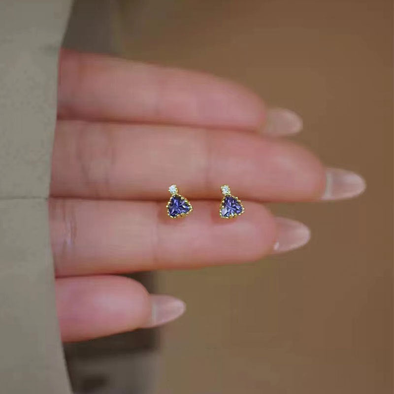 E廠【YC9965E】S925純銀迷你三角鋯石耳環女精緻閃亮小巧精緻輕奢耳飾品 24.02-3