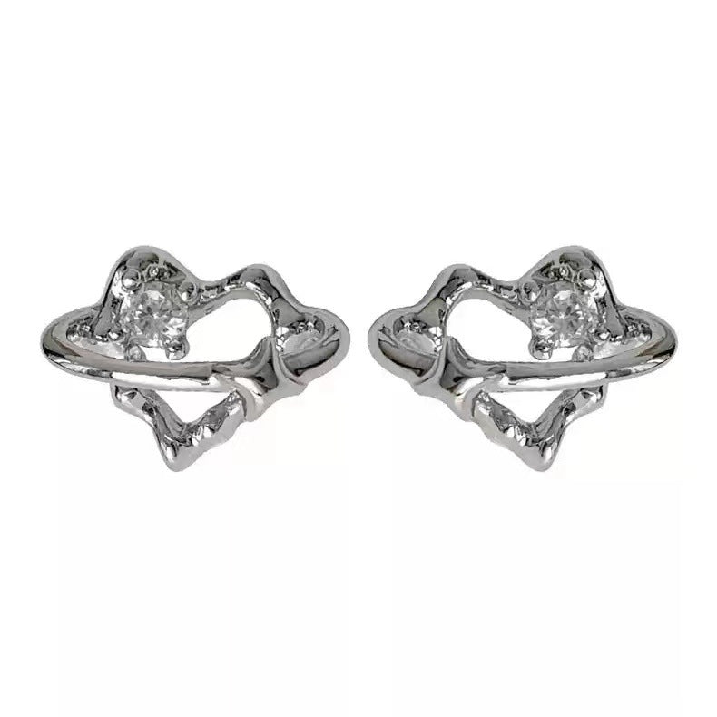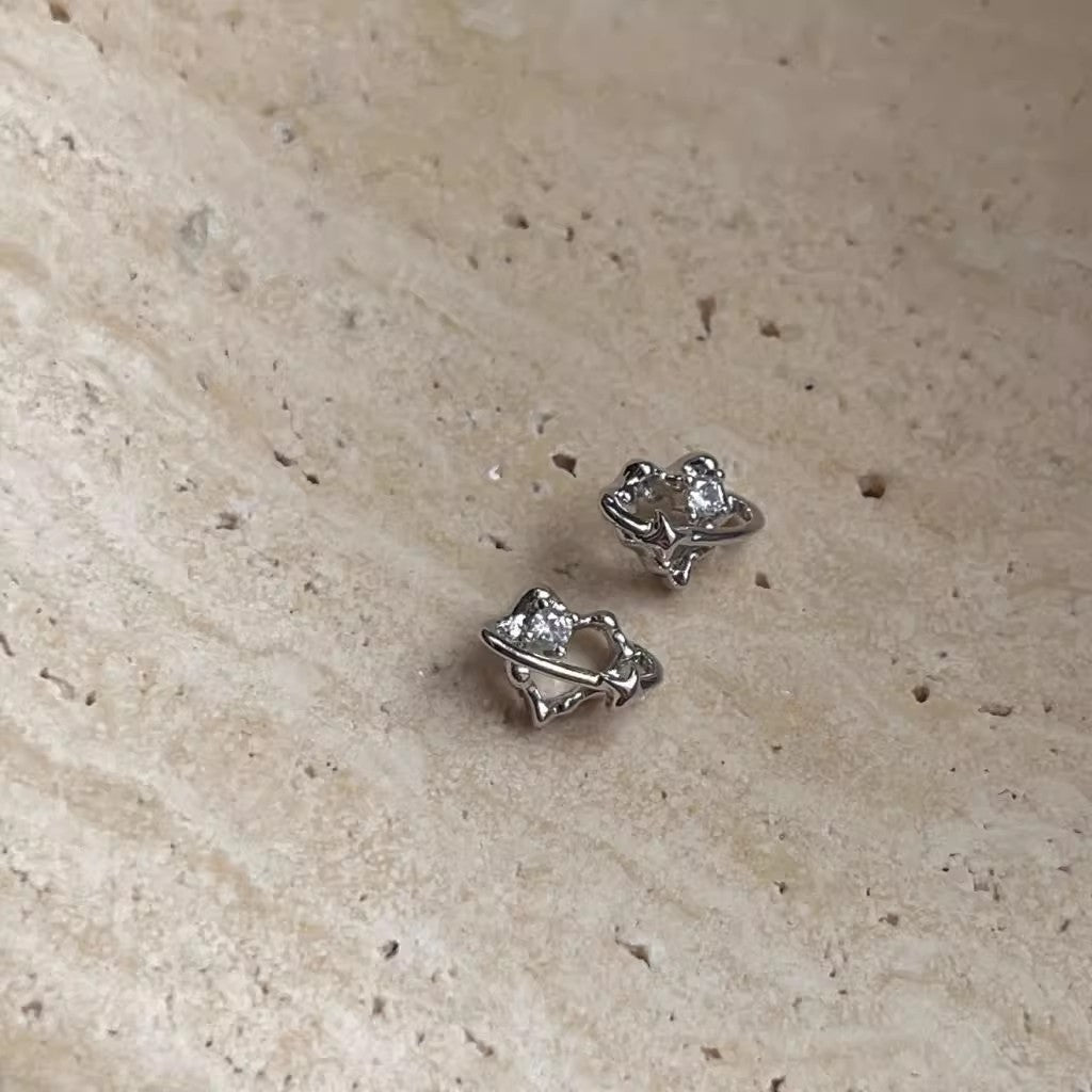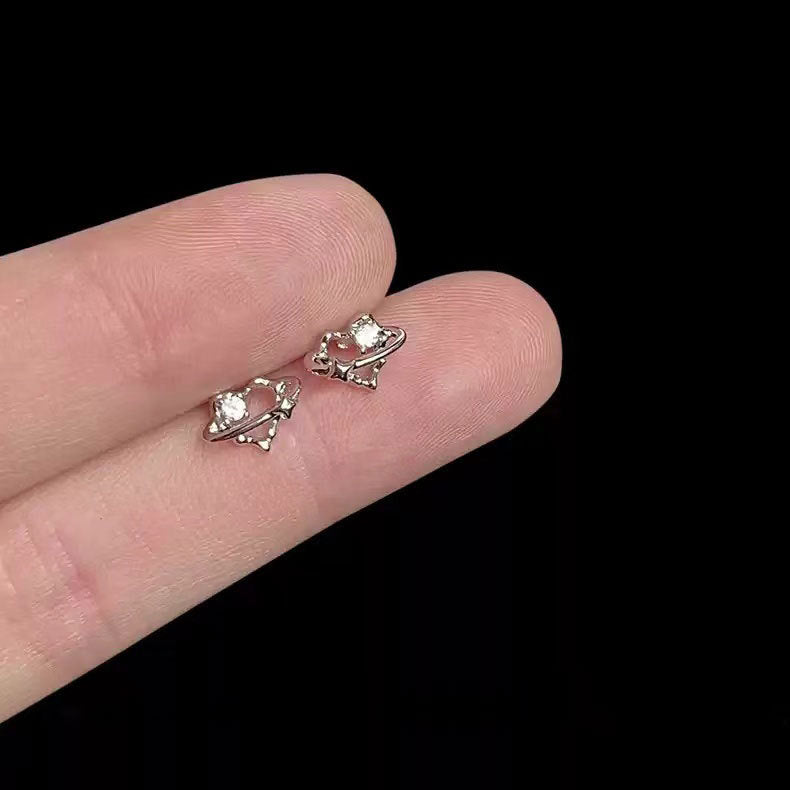E廠【YC9985E】S925純銀個性愛心星球耳環女甜酷風少女感百搭耳環 24.02-3