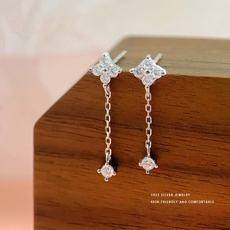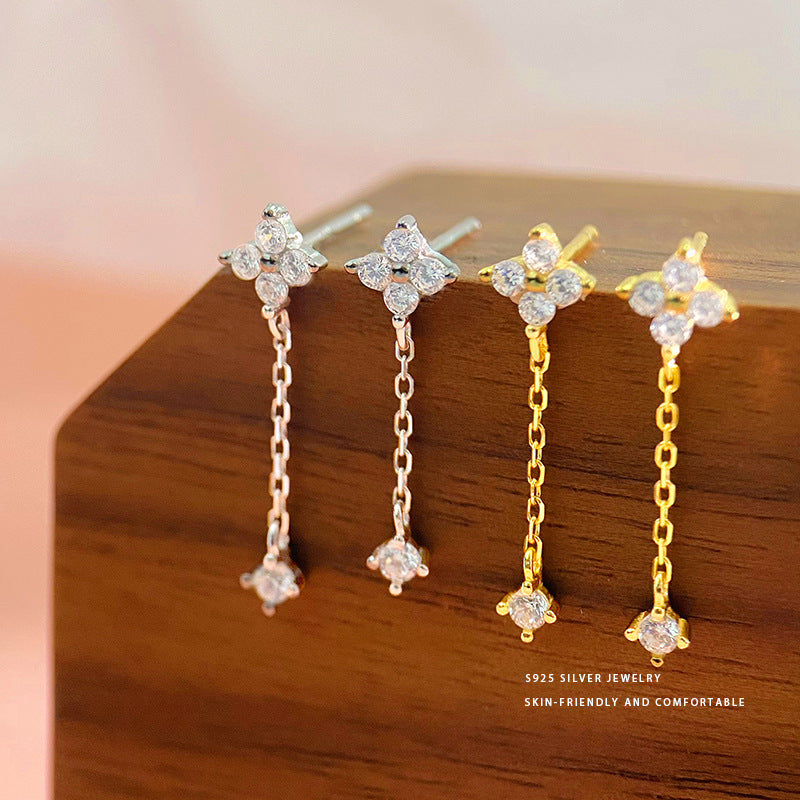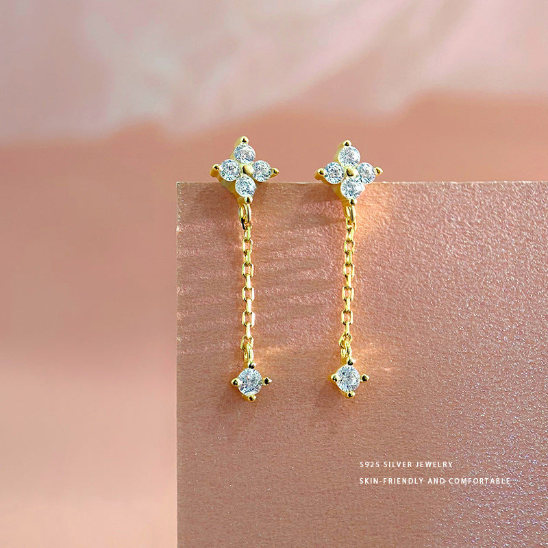 E廠【YC9988E】S925純銀精美四葉花朵流蘇耳環女長款顯瘦夏日新款耳飾品 24.05-1