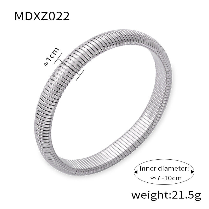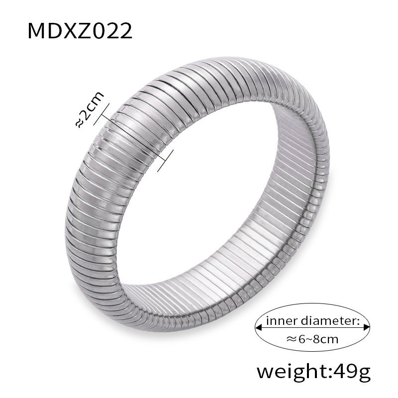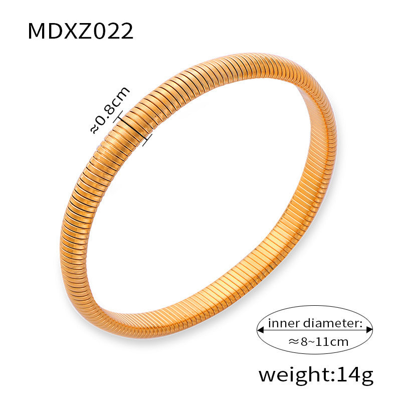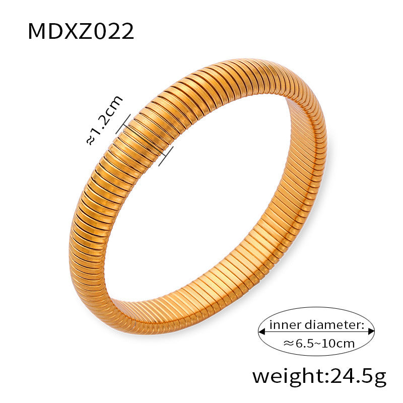 B廠【Z022】ins風輕奢簡約個性彈性手環女法式鈦鋼鍍金光面寬版手環飾品 24.03-3