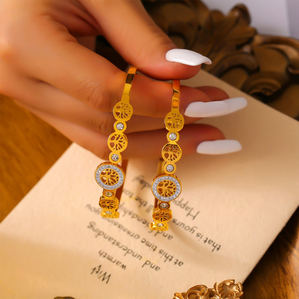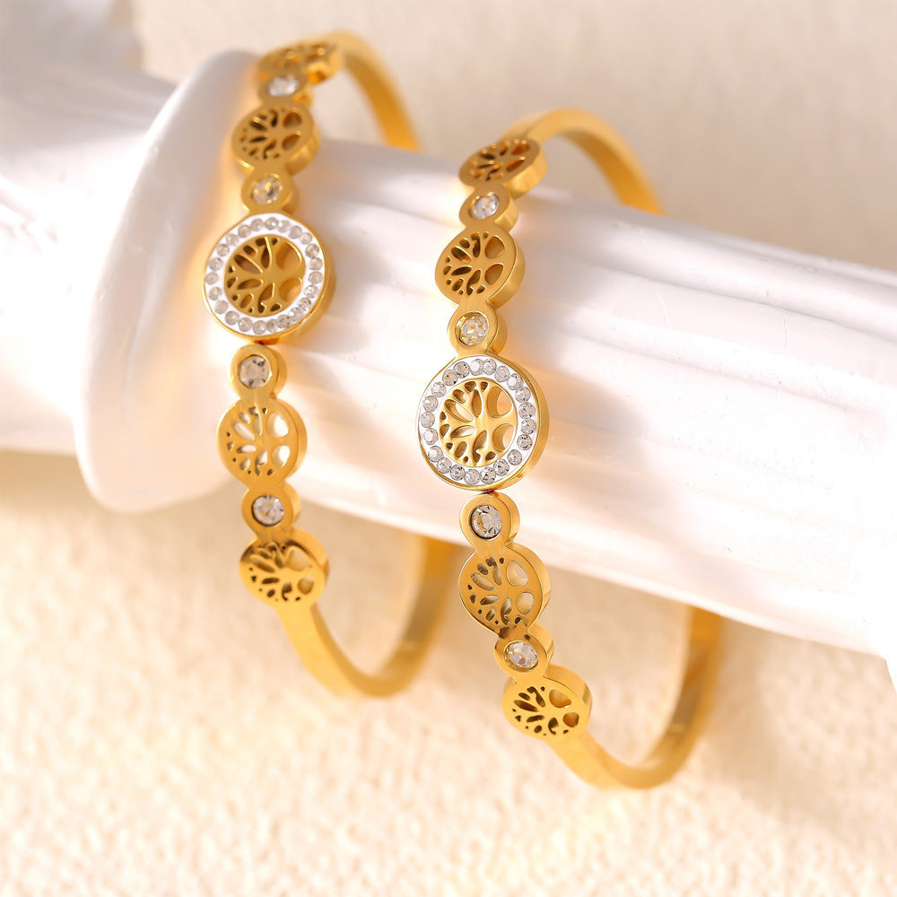B廠【Z048】英倫復古小眾個性幾何鏤空鑲鑽設計感飾品生命樹造型鈦鋼手鐲 24.06-1