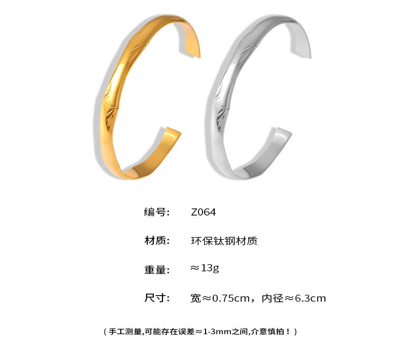 B廠【Z064】歐美INS風手鐲不掉色節節高升百搭手環開口竹節鈦鋼鍍18k金手鐲女 24.06-1