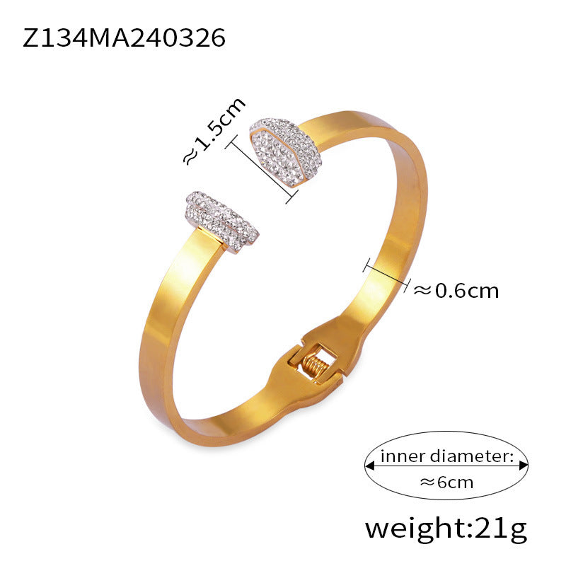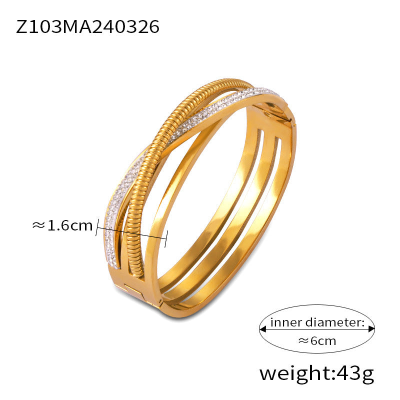 B廠【Z073-Z132】歐美跨境輕奢風錶帶紋鈦鋼鍍金創意手環開口設計鑲鑽手鐲套裝飾品 24.04