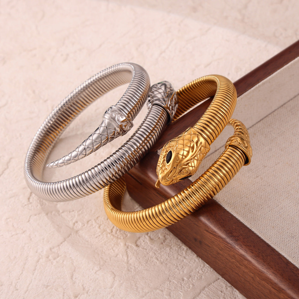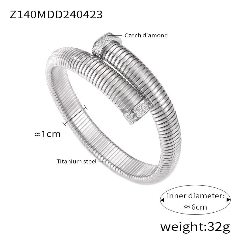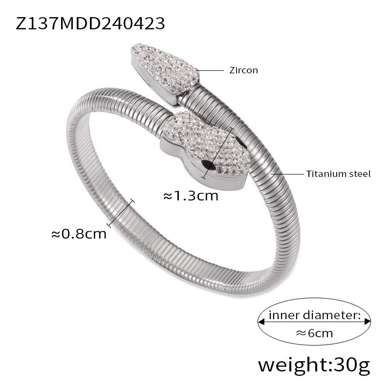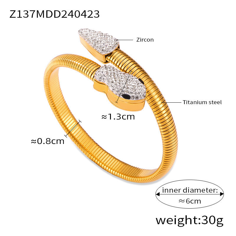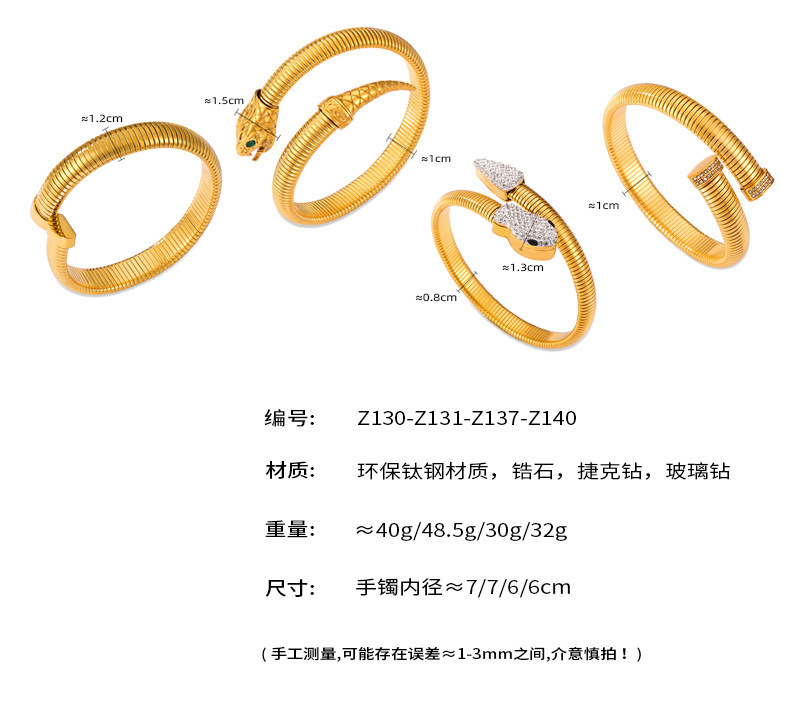 B廠【Z130-Z140】彈力鵝喉鍊手環鈦鋼開口蛇頭蛇尾手鐲百搭時尚鍍18K金鑲鋯石飾品 24.05-1