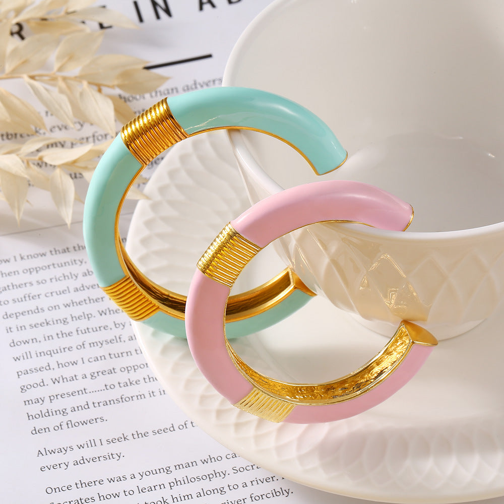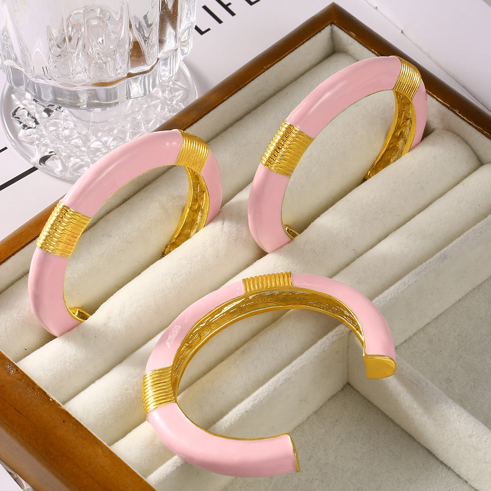 B廠【Z181】法式復古冷淡風滴油寬邊多層脊紋開口手鐲設計時尚個性鈦鋼手環女 24.07-1